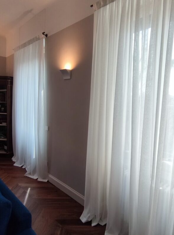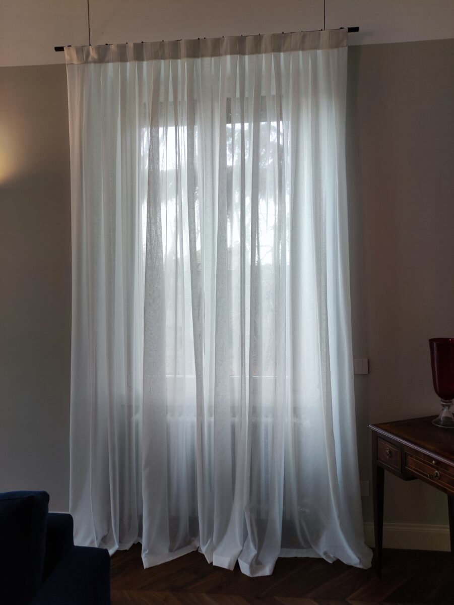 Cotone o lino saranno perfetti per schermare i fasci luminosi in maniera tenue e chic. E tenete le finestre aperte il più possibile! Per ossigenare la stanza di charme ma anche di iodio.