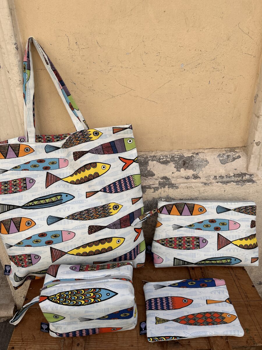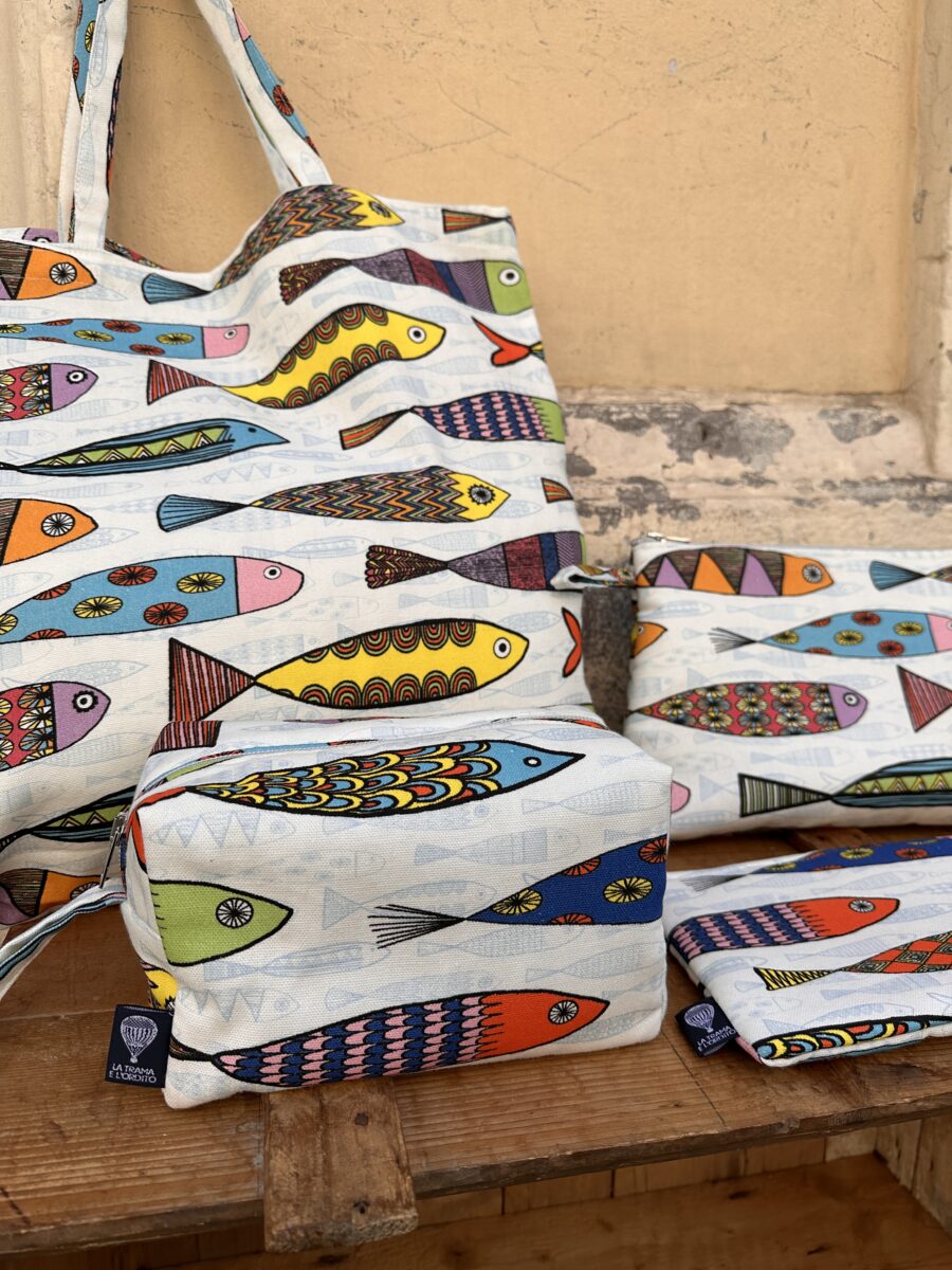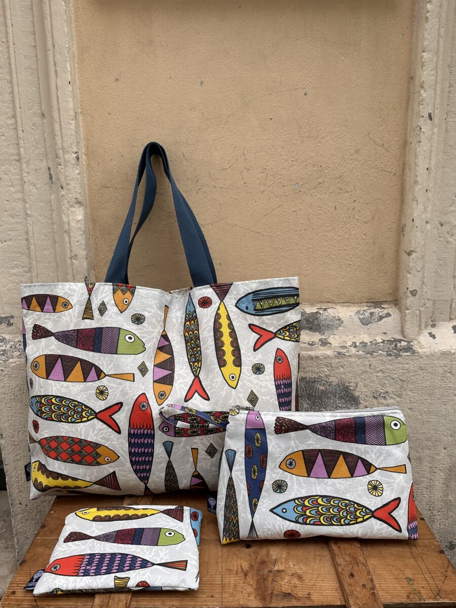 Abbiamo progettato una linea di prodotti in puro cotone realizzati con i nostri tessuti e li abbiamo abbinati tra loro, per creare una proposta originale e per rendere unico il tuo stile. La collezione “Pesci Colorati e Accessori ” comprende: una Tote Bag, una Pochette , un Beauty Case e una Trousse realizzati con lo stesso tessuto, per formare una bellissima parure. Puoi usarli per andare al lavoro, per la spesa o per la palestra. Puoi portarli con te in vacanza, per una giornata al mare o in piscina. Oppure potrebbe essere una bellissima e originale idea regalo per una persona speciale. Puoi acquistare il set completo o scegliere i singoli prodotti cliccando sui link evidenziati. Il set è prodotto artigianalmente e realizzato dalla nostra sartoria di Brescia, con la massima cura e attenzione ai materiali e alle rifiniture. Scopriamo insieme la nuova collezione di borse e accessori coordinati! L’etichetta con il nostro logo garantisce l’autenticità del manufatto. Vista la varietà dei soggetti rappresentati sul tessuto ci potranno essere differenze tra un set e l’altro.