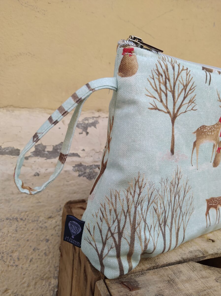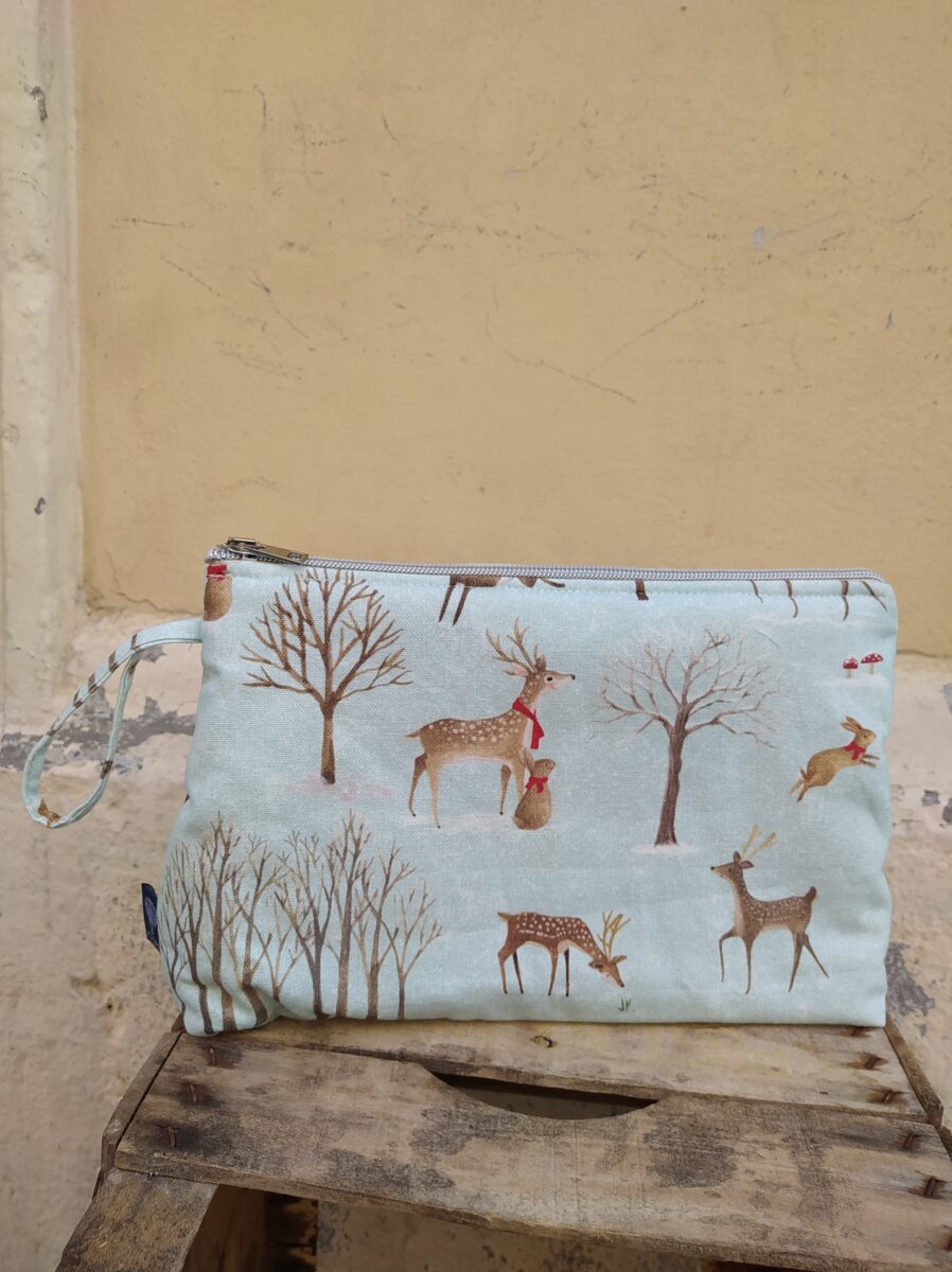 🦌 Realizzato in cotone stampato, è foderato internamente con un tessuto in tinta unita coordinata. E’ rifinito con grande cura artigianale e ha una taschina interna, ideale per piccoli oggetti. La cerniera decorativa aggiunge un tocco raffinato. Il tessuto, lavabile e resistente, lo rende pratico e adatto a un uso quotidiano o a essere portato in viaggio, garantendo ordine e comfort in ogni occasione.