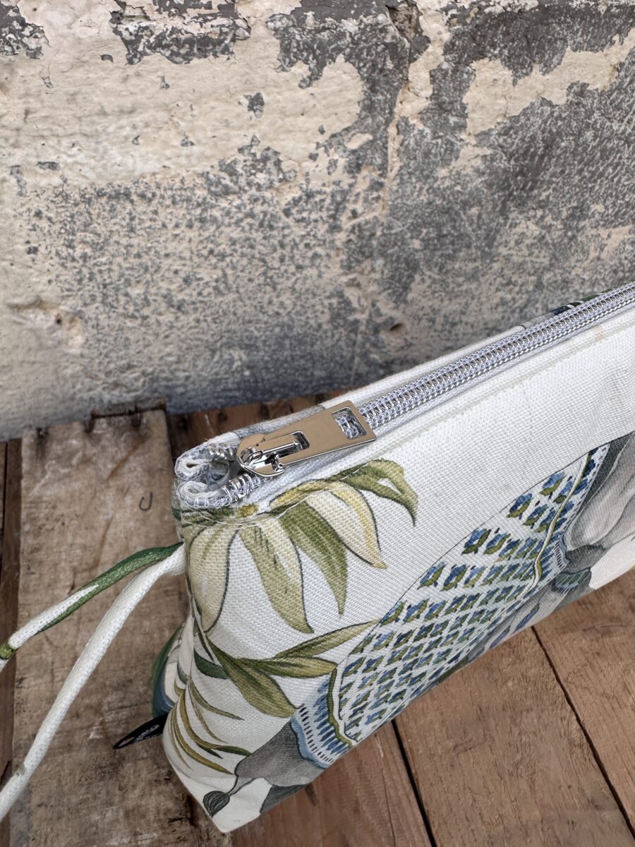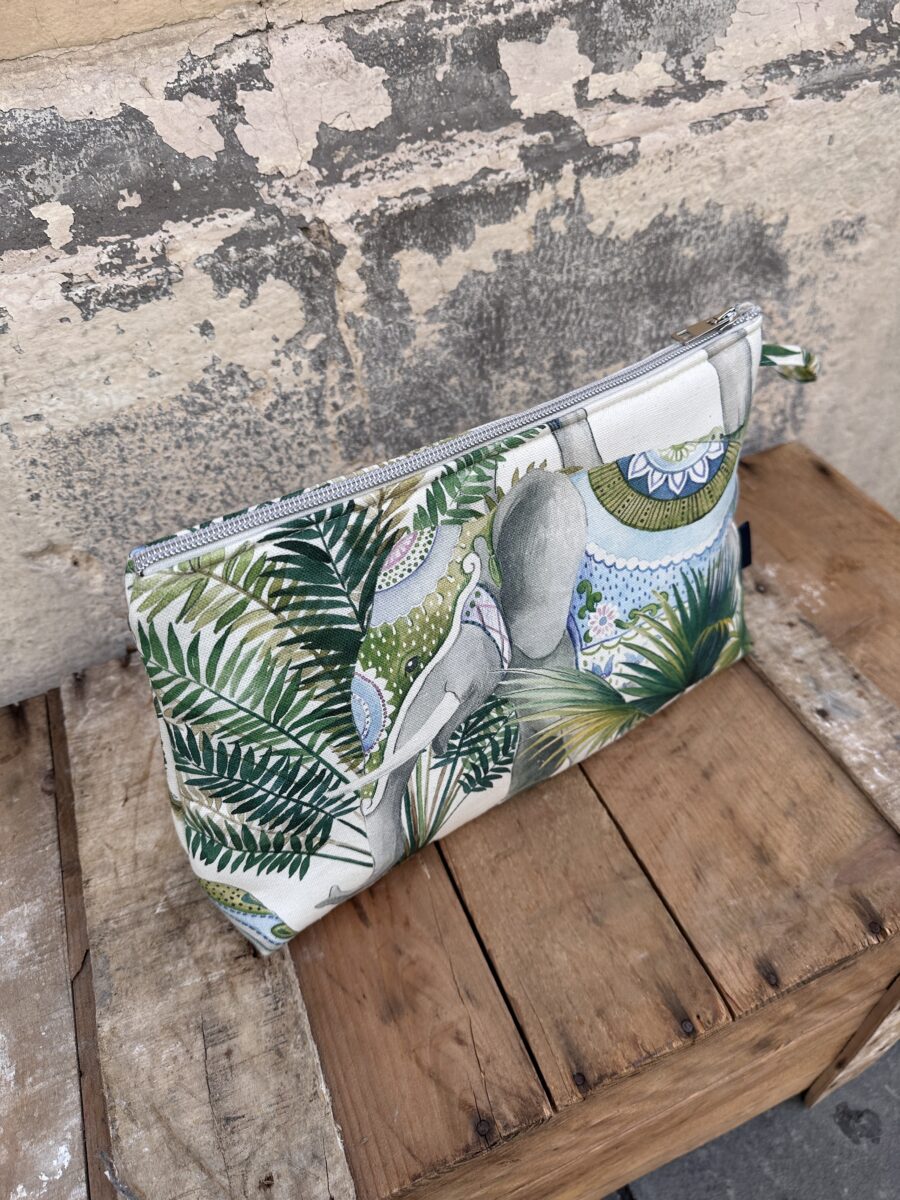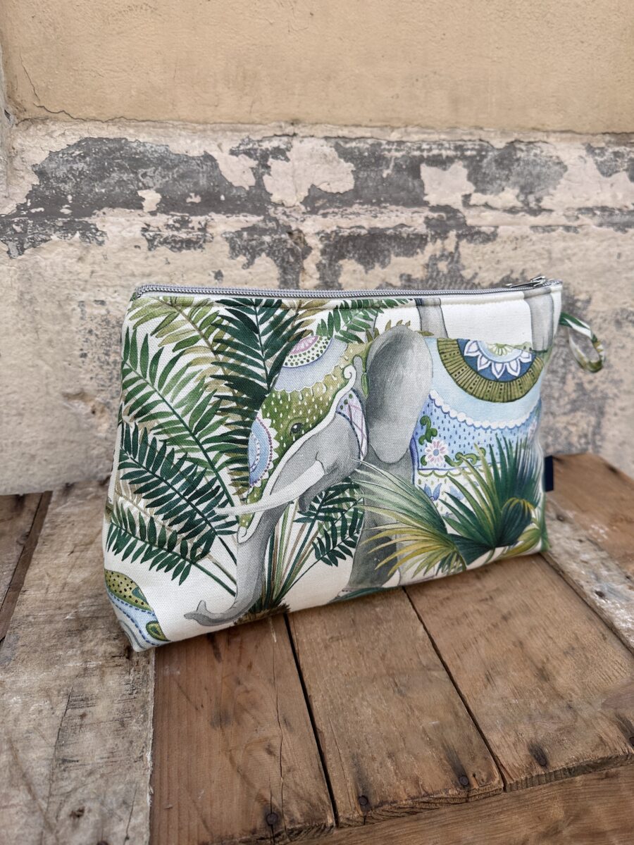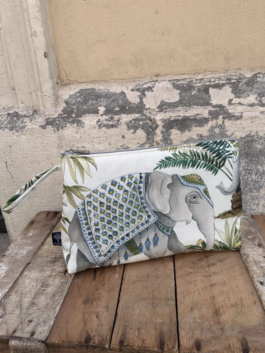 Perfetto anche come idea regalo, può essere abbinato alla tote bag e alla pochette coordinata Elefanti Jaipur, creando un set elegante e coerente, ideale per chi ama lo stile ricercato e i tessuti d’arredo trasformati in accessori unici.