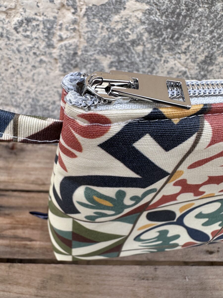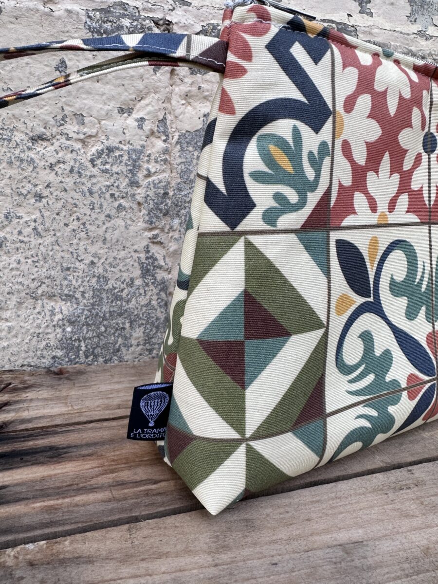 Il Beauty Case Impermeabile Maioliche è l’accessorio ideale per chi cerca praticità senza rinunciare allo stile. La sua fantasia ispirata alle maioliche mediterranee, con motivi geometrici e colori caldi e decorativi, richiama atmosfere solari e raffinate, perfette per accompagnarti in viaggio o nella quotidianità.
