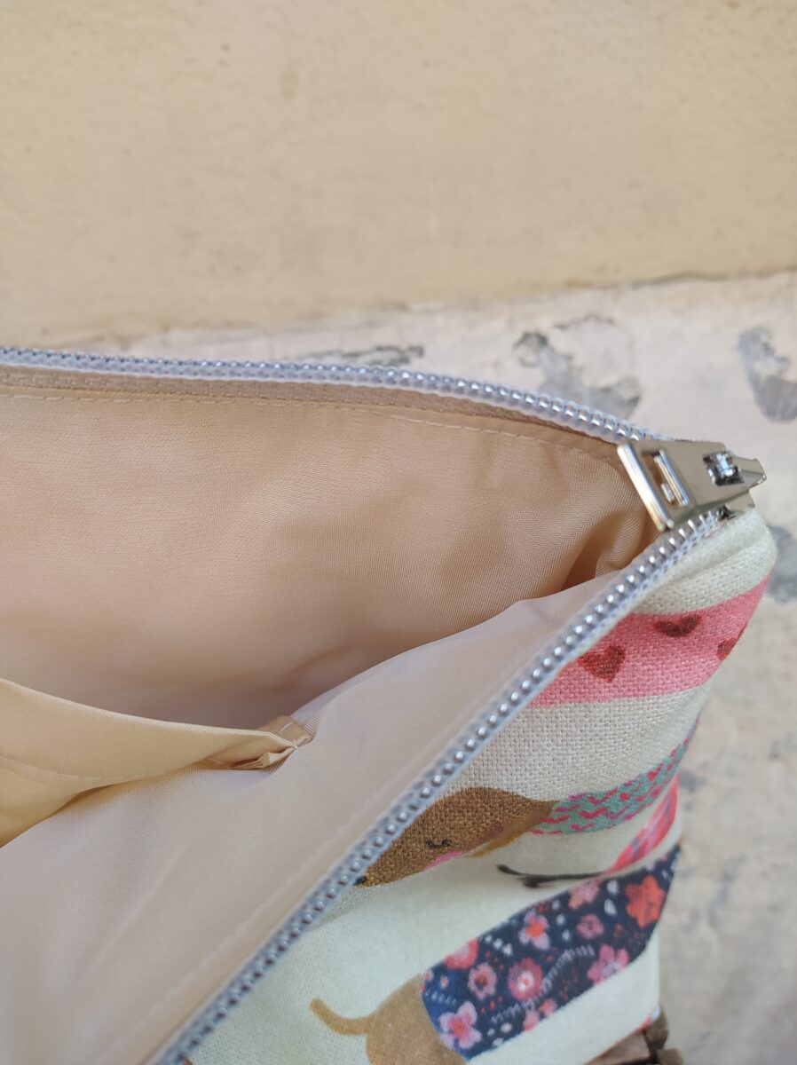 🐾 Realizzato in cotone stampato, è foderato internamente con un tessuto in tinta unita coordinata e rifinito con grande cura artigianale. È dotato di una taschina interna che aiuta a mantenere l’ordine e di una cerniera decorativa che aggiunge un tocco di stile. Il tessuto, lavabile e resistente, garantisce la massima praticità, rendendo questo beauty case perfetto per un uso quotidiano.