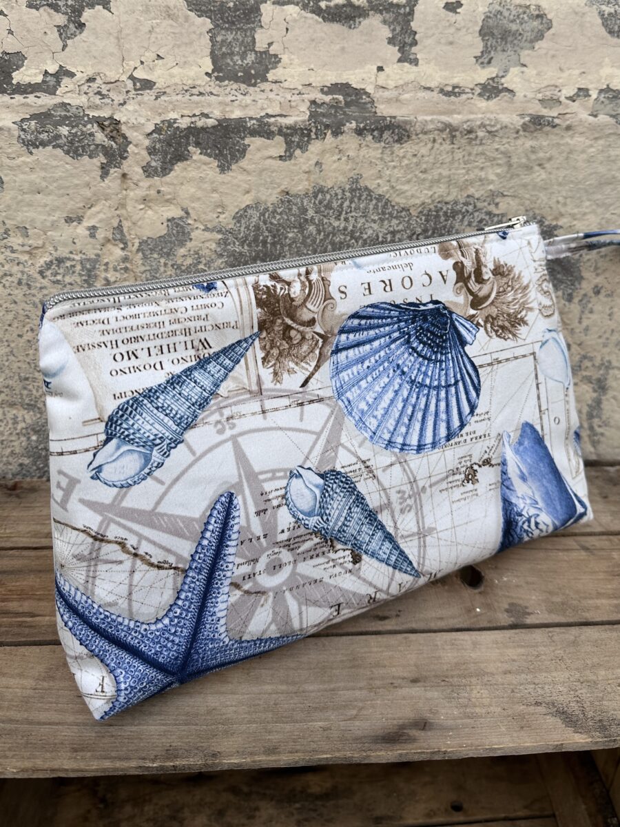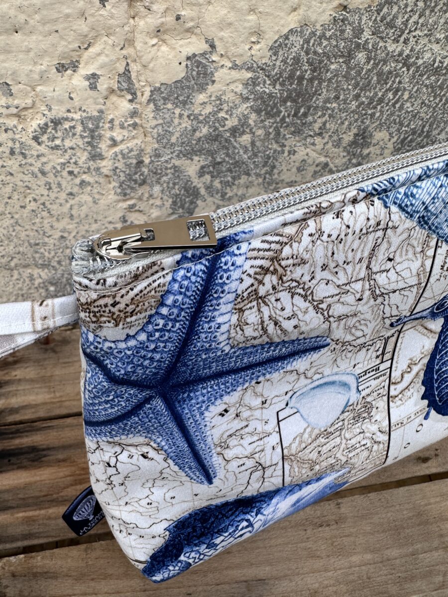 🐚 Realizzato in cotone stampato, è foderato internamente con un tessuto in tinta unita coordinata e rifinito con cura sartoriale. Presenta una taschina interna per riporre piccoli oggetti e una cerniera decorativa che ne completa il design con eleganza. Il tessuto, lavabile e resistente, garantisce una lunga durata nel tempo, rendendolo ideale per l’uso quotidiano o per accompagnarti in viaggio.