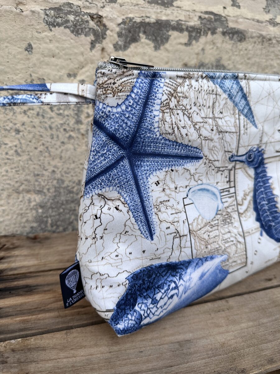Il beauty case in tessuto Conchiglie e Cavallucci è un accessorio raffinato e vivace, ispirato ai colori e alle forme del mare. La sua fantasia marina con conchiglie e cavallucci marini trasmette una piacevole sensazione di freschezza e libertà, trasformando un oggetto di uso quotidiano in un accessorio che profuma d’estate.