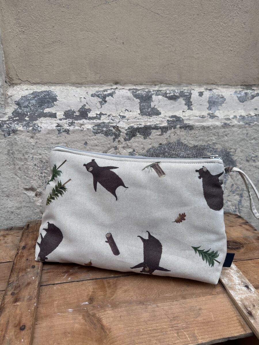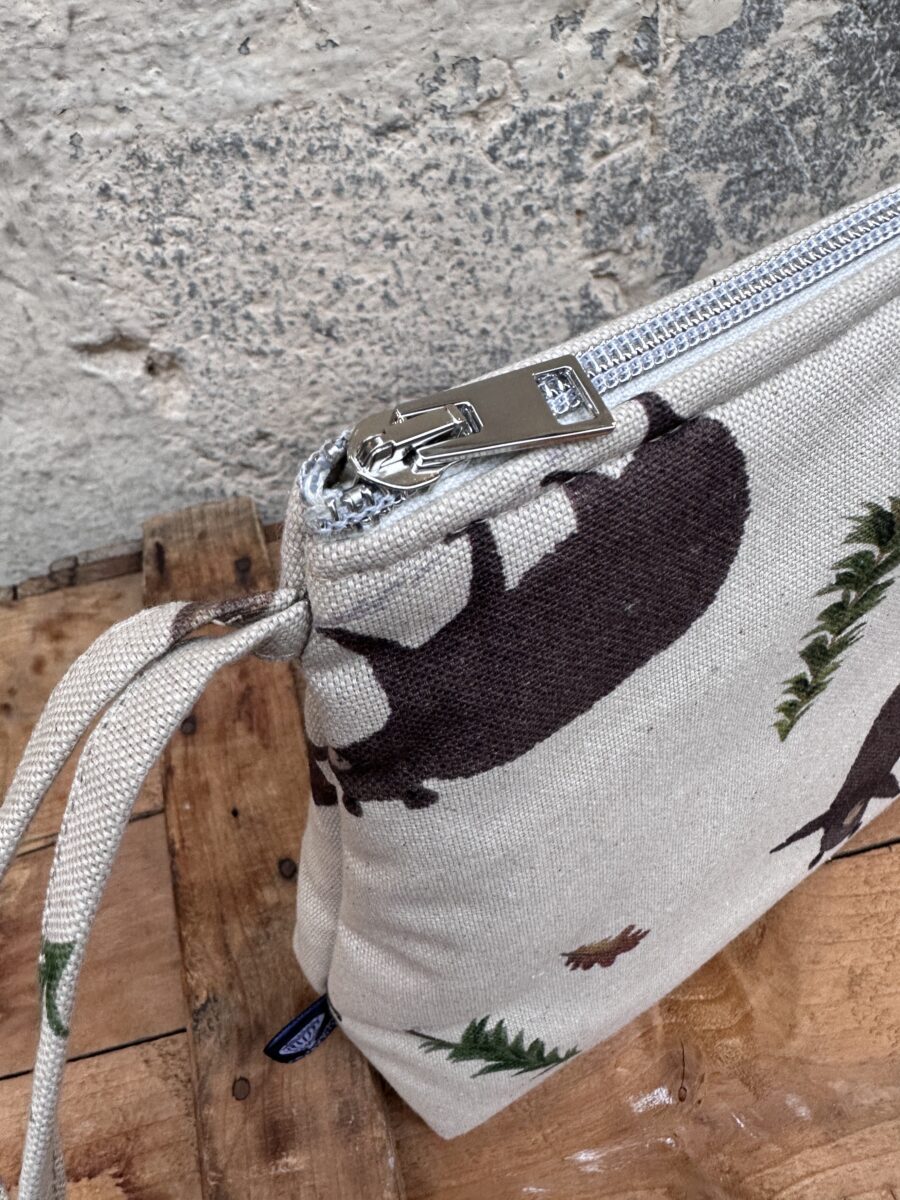 Il beauty case in tessuto Orsi è un accessorio dal fascino naturale e autentico, ispirato alla montagna e alla quiete dei boschi. La sua fantasia calda e avvolgente, con teneri orsi e motivi nordici, lo rende perfetto per chi ama gli ambienti accoglienti e lo stile rustico ma elegante.