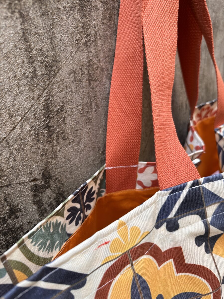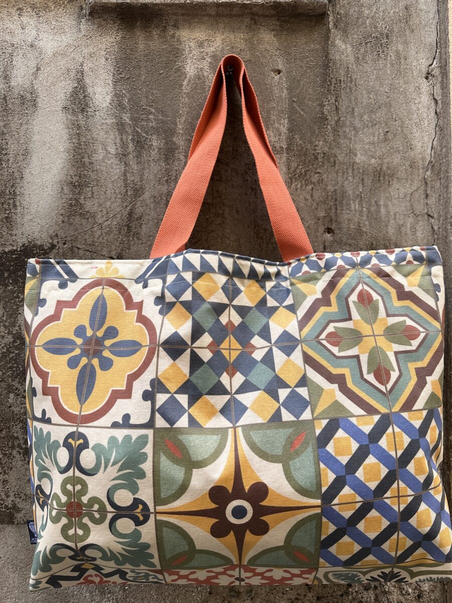 La fantasia, ispirata alle maioliche mediterranee, è ricca di motivi geometrici e colori armoniosi che donano personalità e carattere, rendendo ogni borsa un elemento distintivo.