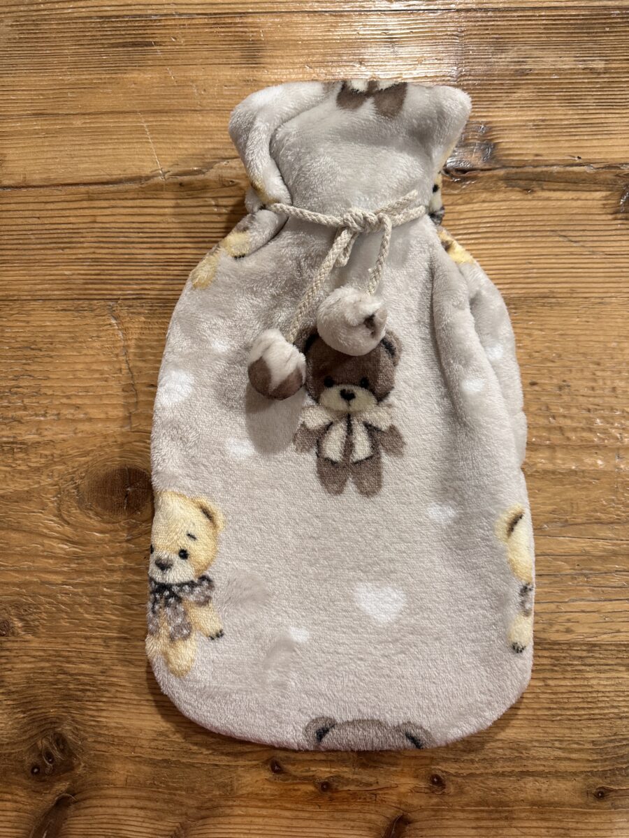 La Boule Acqua Calda Orsetti è pensata per chi desidera un accessorio morbido, dolce e confortevole, ideale per scaldarsi nei momenti in cui si ha bisogno di relax. La fodera in morbido peluche sintetico è soffice al tatto e regala una sensazione immediata di calore. Inoltre, la fantasia con gli orsetti crea un effetto tenero e rassicurante, perfetto sia per adulti sia per bambini. Il colore neutro rende la boule armoniosa e facile da abbinare agli altri elementi della casa.