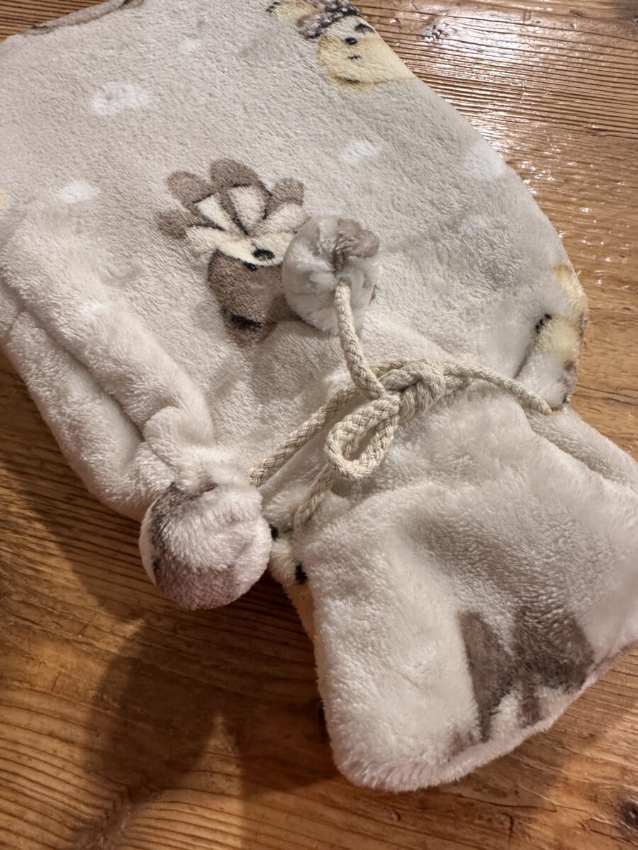 La fodera è studiata per essere pratica e robusta. La chiusura con bottone permette di inserire e togliere facilmente la borraccia interna. Inoltre, il tessuto mantiene bene il calore e rende l’utilizzo piacevole e confortevole. Di conseguenza, la boule è ideale per le serate invernali, per alleviare dolori muscolari oppure per scaldare il letto prima della nanna. Il materiale è lavabile ad acqua, quindi la manutenzione è semplice.