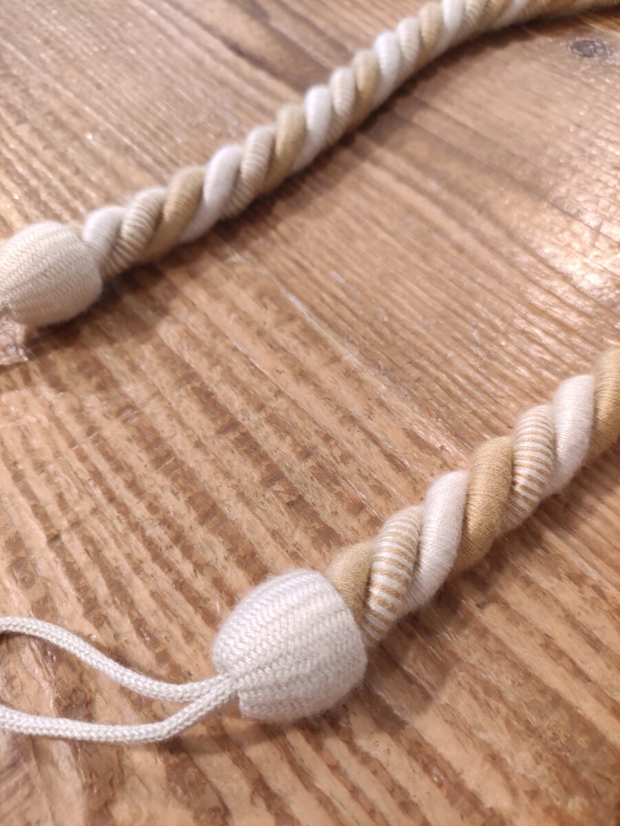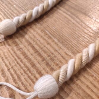 Le nostre passamanerie sono prodotte interamente in Italia. Collaboriamo con un’azienda storica del settore, famosa per la sua abilità artigianale e l’attenzione al dettaglio. I filati utilizzati sono di altissima qualità, scelti per la loro resistenza e bellezza. Ogni embrasse è il risultato di un processo di lavorazione meticoloso, che rispetta le tecniche tradizionali ma con un occhio al design moderno.