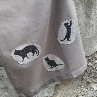 Il canovaccio in cotone con orlo a giorno Gatti Silhouette è rifinito con etichetta Trama e Ordito Tessuti, garanzia di autenticità e lavorazione made in Brescia.