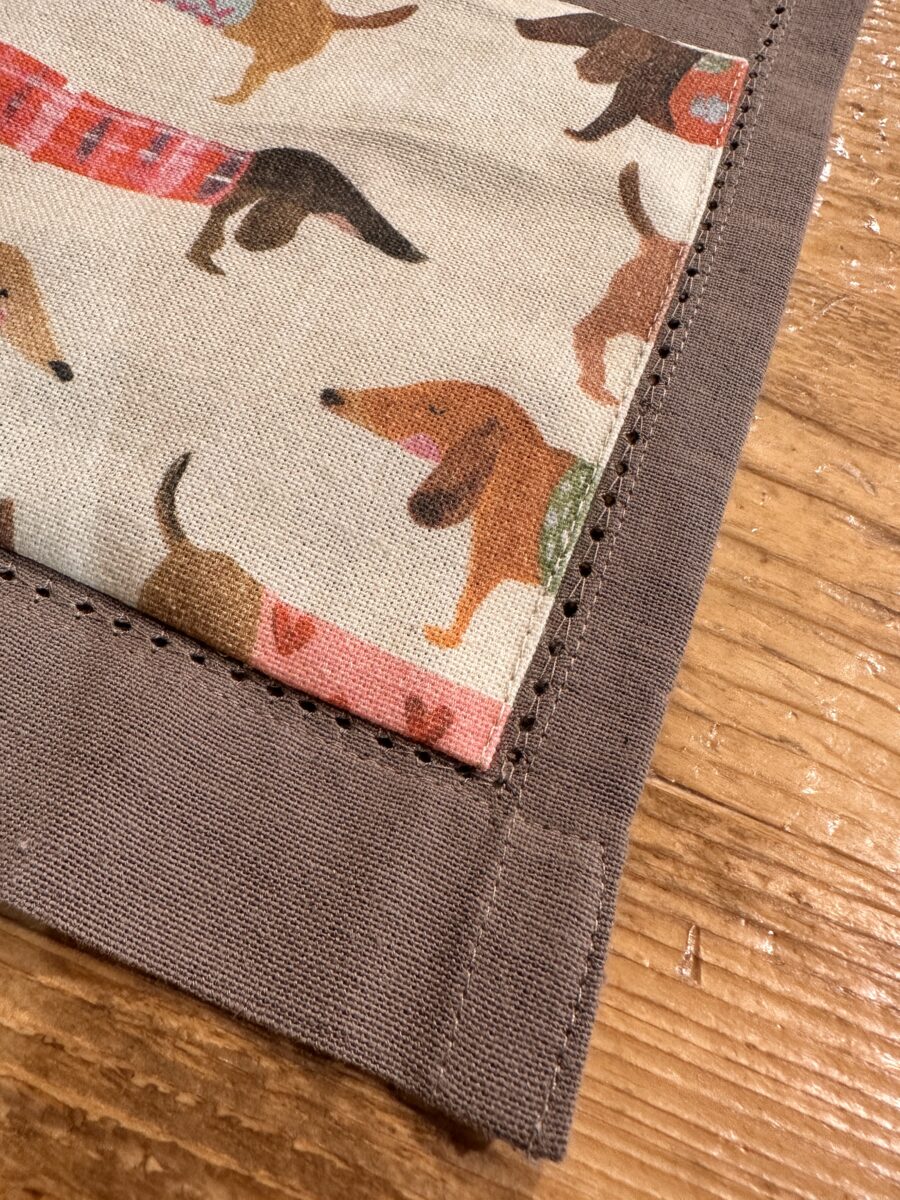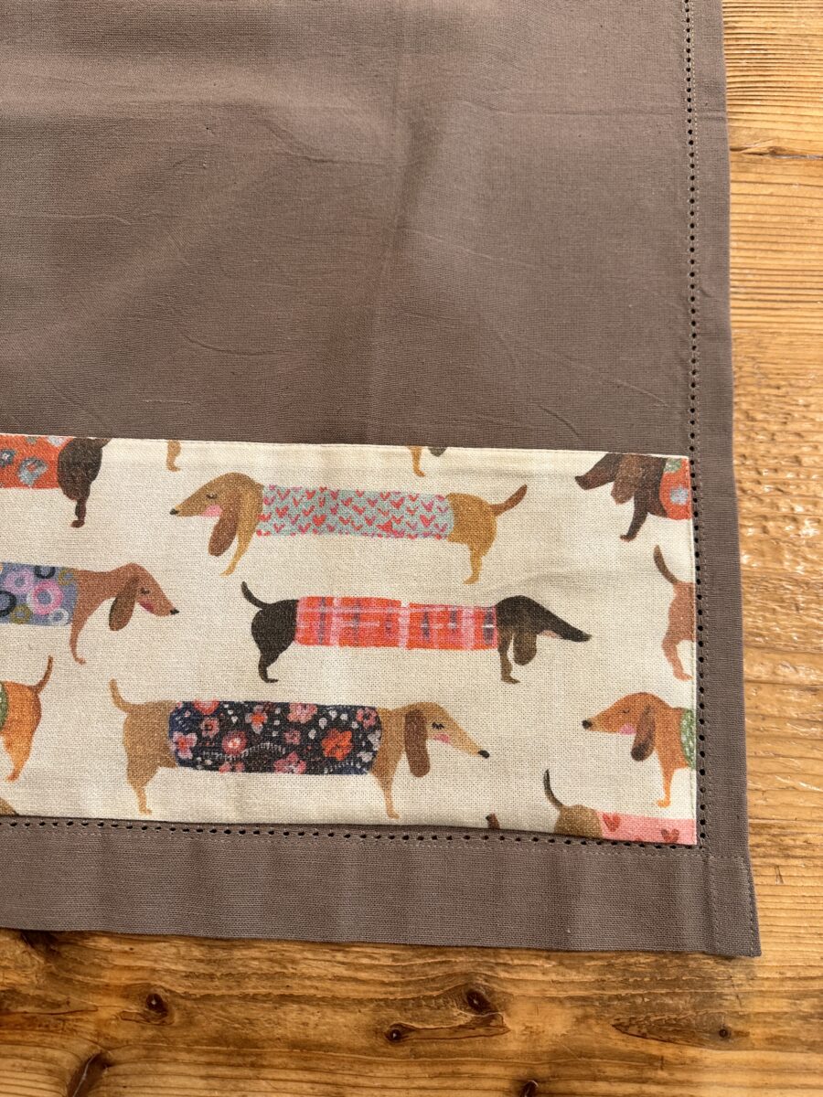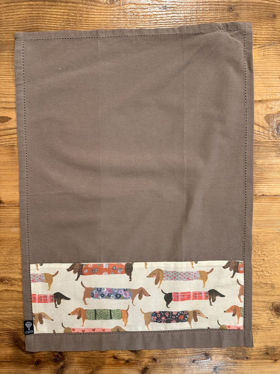 Il canovaccio in cotone con orlo a giorno Cani Bassotti fa parte delle nostre collezioni coordinate, pensate per unire praticità e stile nella cucina di ogni giorno.