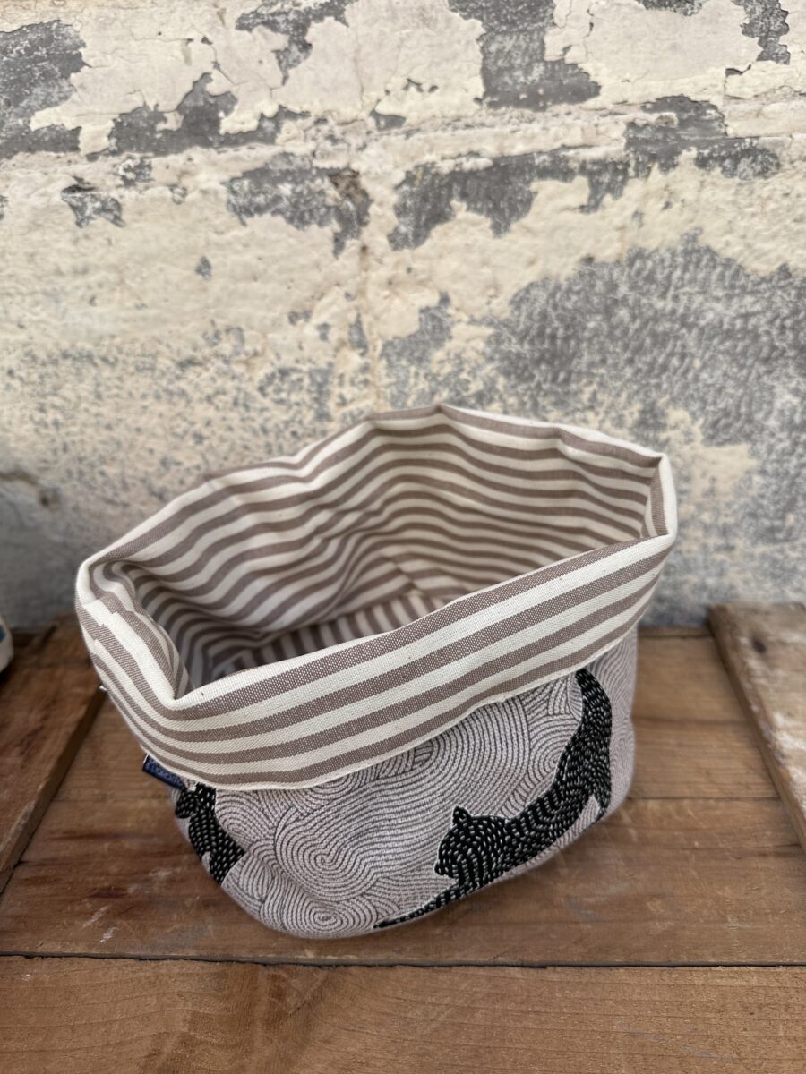 Cestino in Tessuto Gatti Silhouette – Scopri il nostro incantevole Cestino in Tessuto Gatti Silhouette, un complemento d’arredo versatile e chic per la tua casa. Parte della nostra collezione coordinata, questo cestino è stato creato e cucito con cura per essere abbinato ai nostri altri accessori tessili, offrendo la possibilità di creare set magnifici e armoniosi.