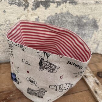 Cestino in Tessuto Cani Love – Scopri la versatilità dei nostri cestini artigianali! Perfetti per servire il pane in tavola o come originali svuota tasche, questi cestini aggiungeranno un tocco di allegria e stile a qualsiasi ambiente della tua casa.