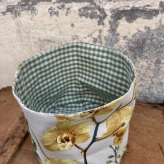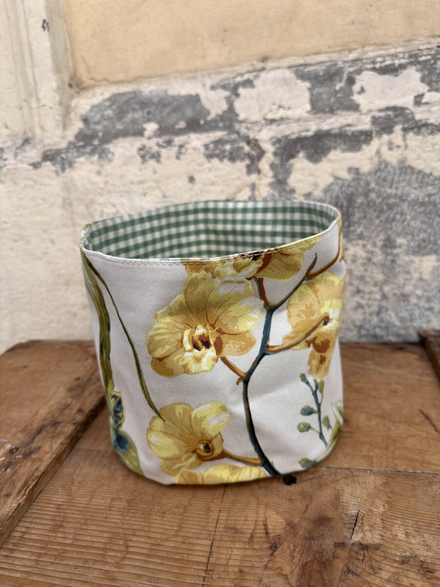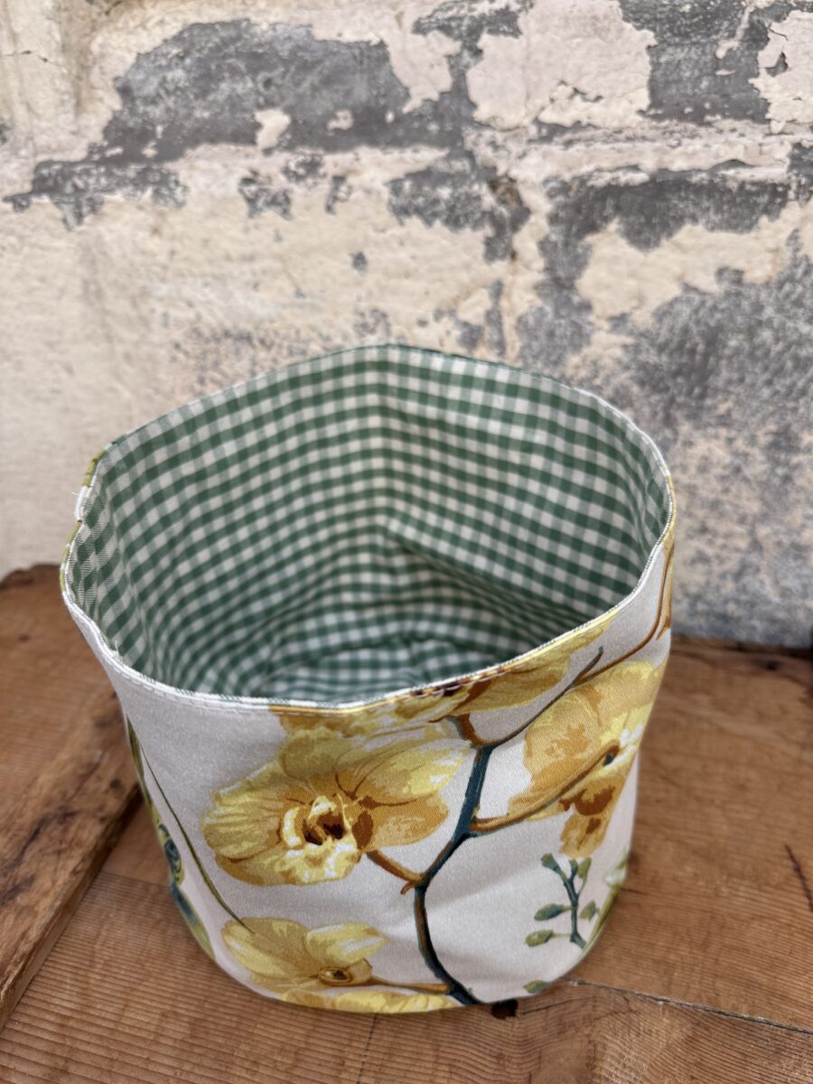 Cestino in Tessuto Fiori Orchidee – Scopri i nostri cestini multiuso, perfetti per ogni ambiente della tua casa! Realizzati con cura dalla sartoria artigianale bresciana, questi cestini sono tanto versatili quanto eleganti.