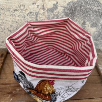Non limitarti alla cucina! Il Cestino in Tessuto “Galli e Galline” si adatta perfettamente anche al bagno, dove può contenere creme, spazzole e lavette. Per un set completo, abbinalo alla Pochette e al Beauty Case coordinati e crea una bellissima parure che arricchirà il tuo bagno con stile.