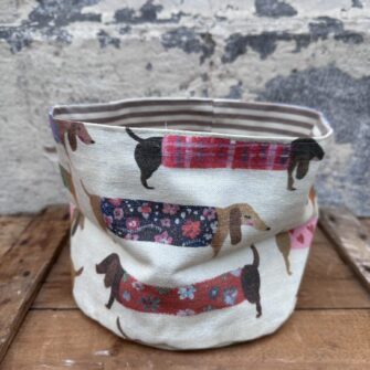 Grazie alla varietà dei soggetti rappresentati sul tessuto, ogni cestino è unico: le immagini possono variare da un articolo all’altro, conferendo a ciascuno un carattere esclusivo.