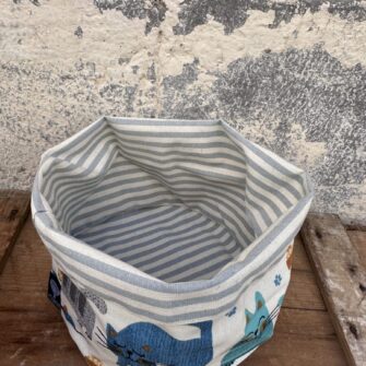 Cestino in Tessuto Gatti Azzurri – Scopri il nostro incantevole Cestino in Tessuto Gatti Azzurri, un complemento d’arredo versatile e chic per la tua casa. Parte della nostra collezione coordinata, questo cestino è stato creato e cucito con cura per essere abbinato ai nostri altri accessori tessili, offrendo la possibilità di creare set magnifici e armoniosi.