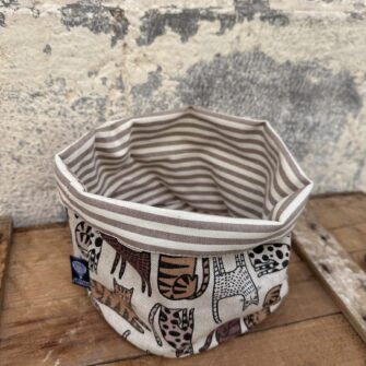 Cestino in Tessuto Gatti Tigrati – Scopri il nostro incantevole Cestino in Tessuto Gatti Tigrati, un complemento d’arredo versatile e chic per la tua casa. Parte della nostra collezione coordinata, questo cestino è stato creato e cucito con cura per essere abbinato ai nostri altri accessori tessili, offrendo la possibilità di creare set magnifici e armoniosi.