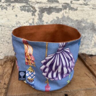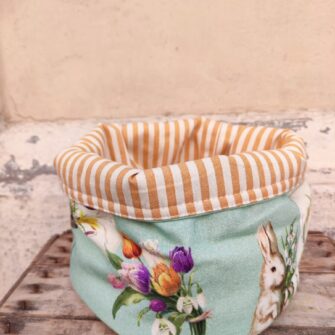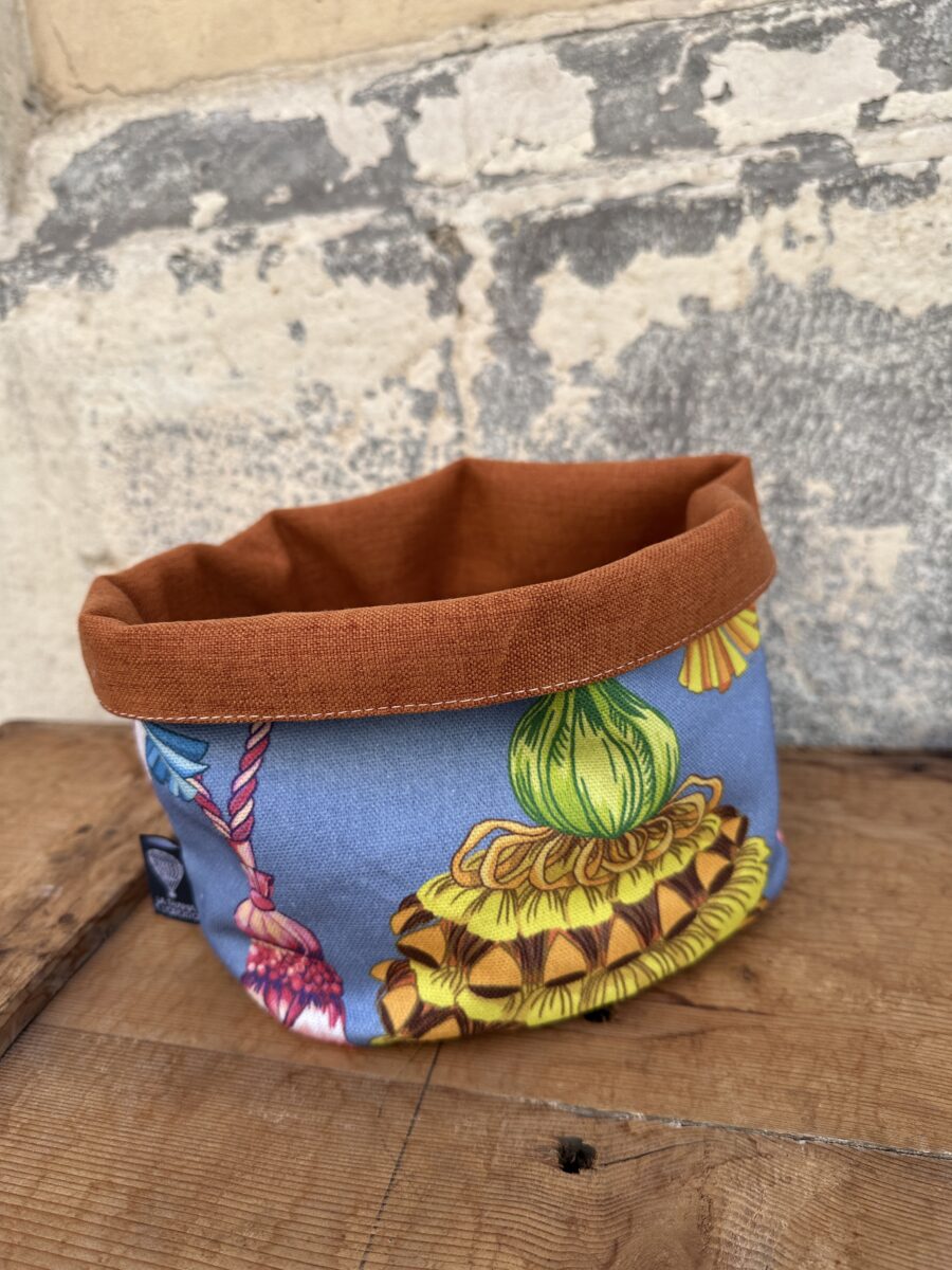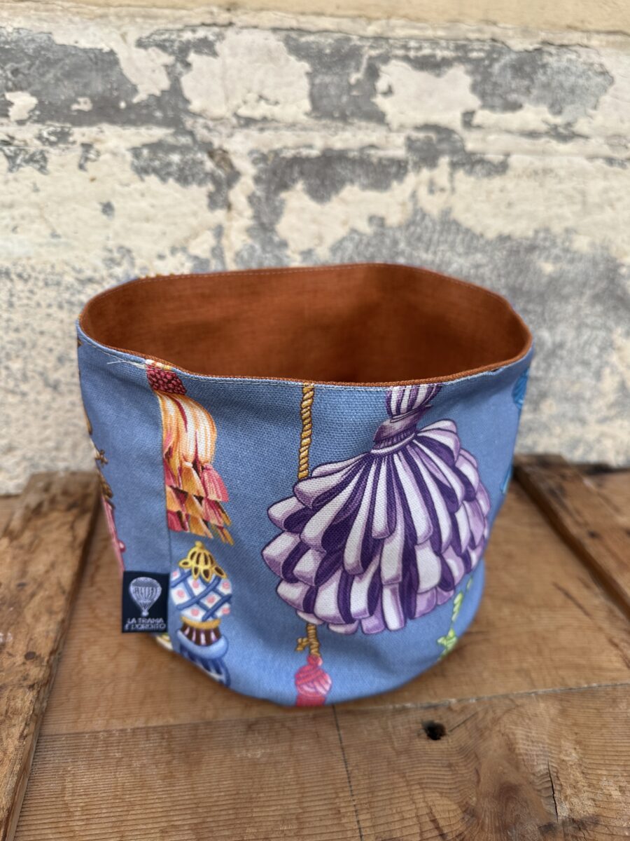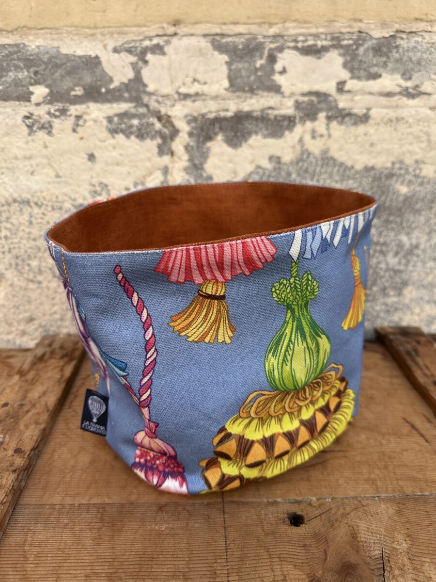 Ogni cestino è creato da una sartoria artigianale bresciana, specializzata in oggetti tessili unici e su misura. Il design reversibile offre due look in uno, mentre la possibilità di lavarli in acqua li rende facili da mantenere puliti.