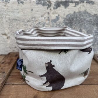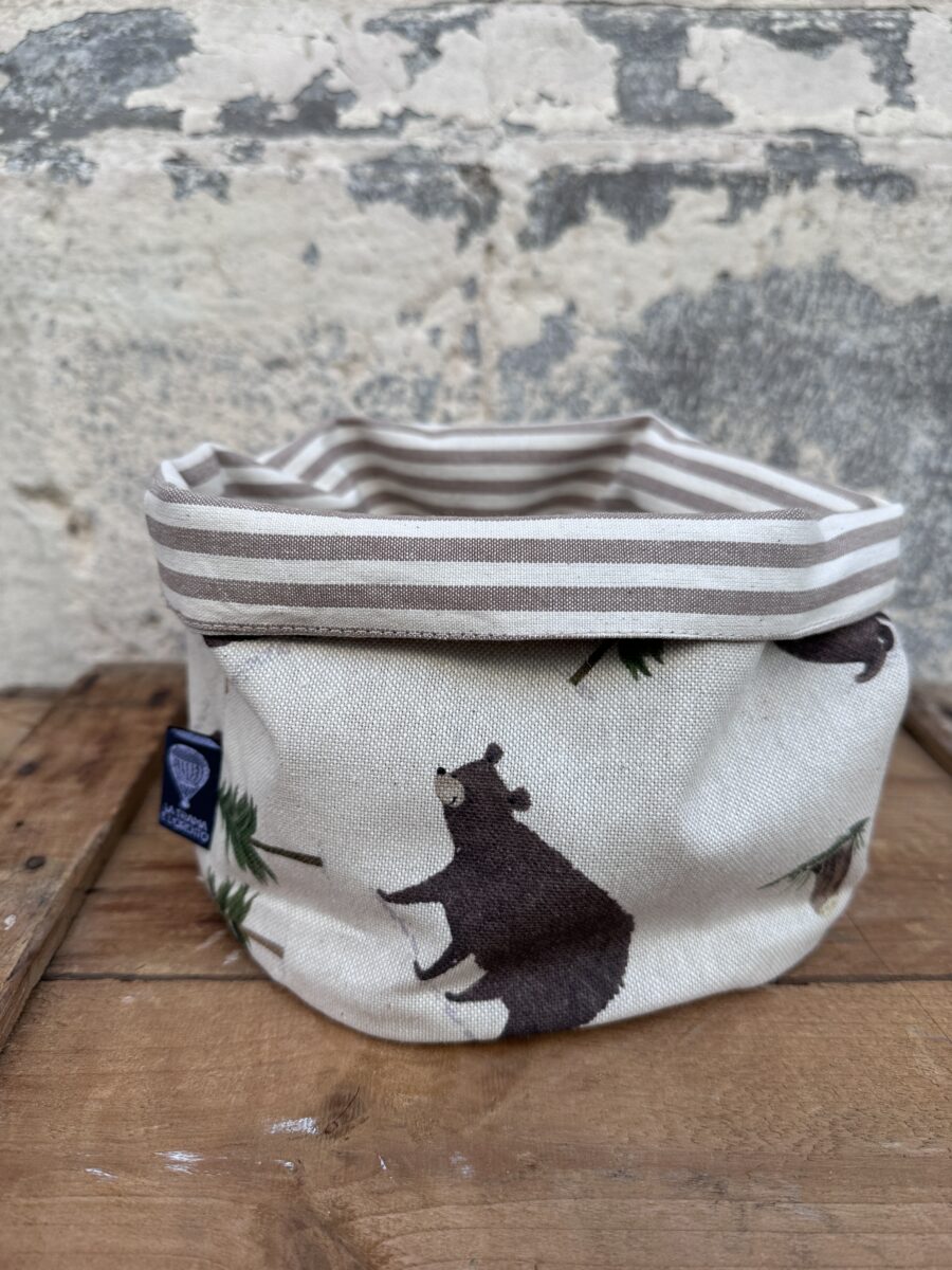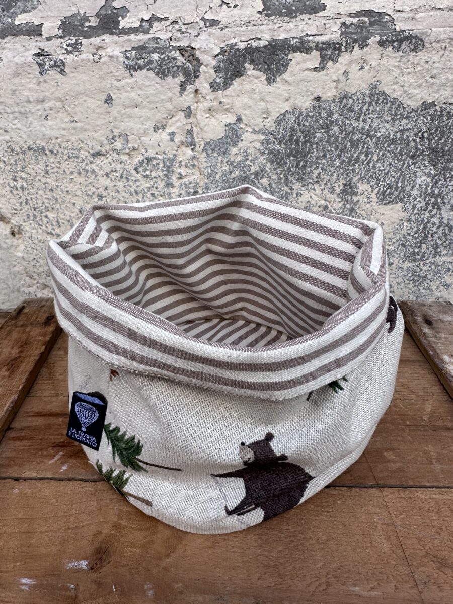 Cestino in Tessuto Orsi – Scopri il nostro incantevole Cestino in Tessuto Orsi, un complemento d’arredo versatile e chic per la tua casa. Parte della nostra collezione coordinata, questo cestino è stato creato e cucito con cura per essere abbinato ai nostri altri accessori tessili, offrendo la possibilità di creare set magnifici e armoniosi.