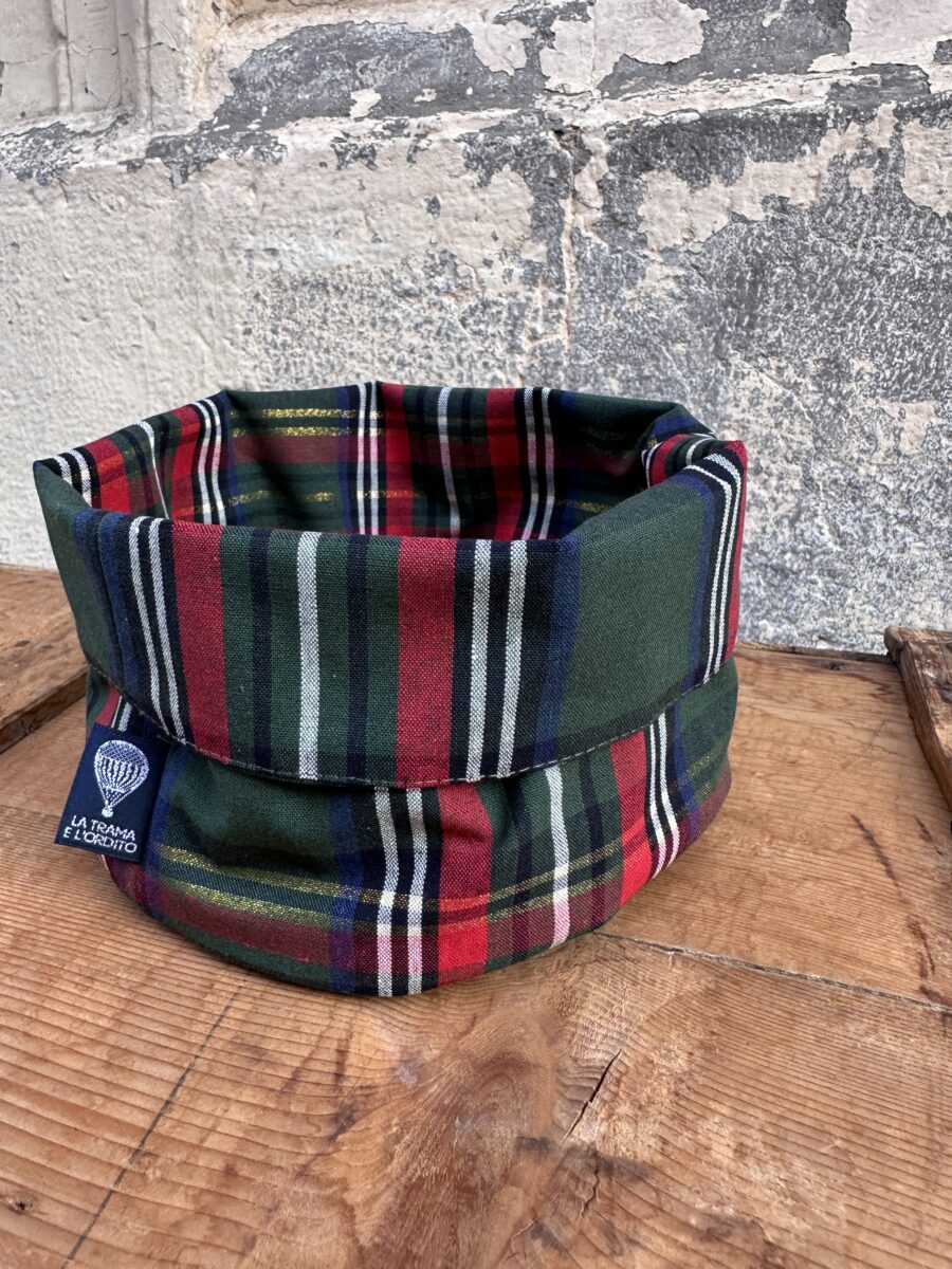 Il Cestino in Tessuto Tartan Verde è realizzato con cura e passione dalla sartoria artigianale bresciana, che crea per noi oggetti tessili unici e su misura. Il design è reversibile e lavabile in acqua, rendendo questi cestini non solo pratici, ma anche belli da vedere.