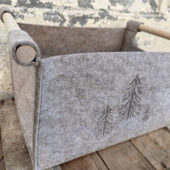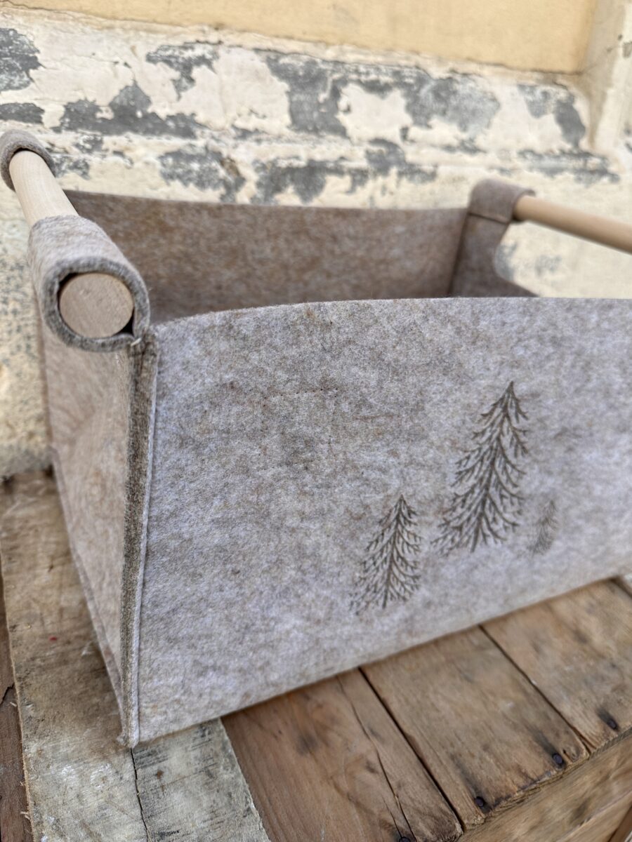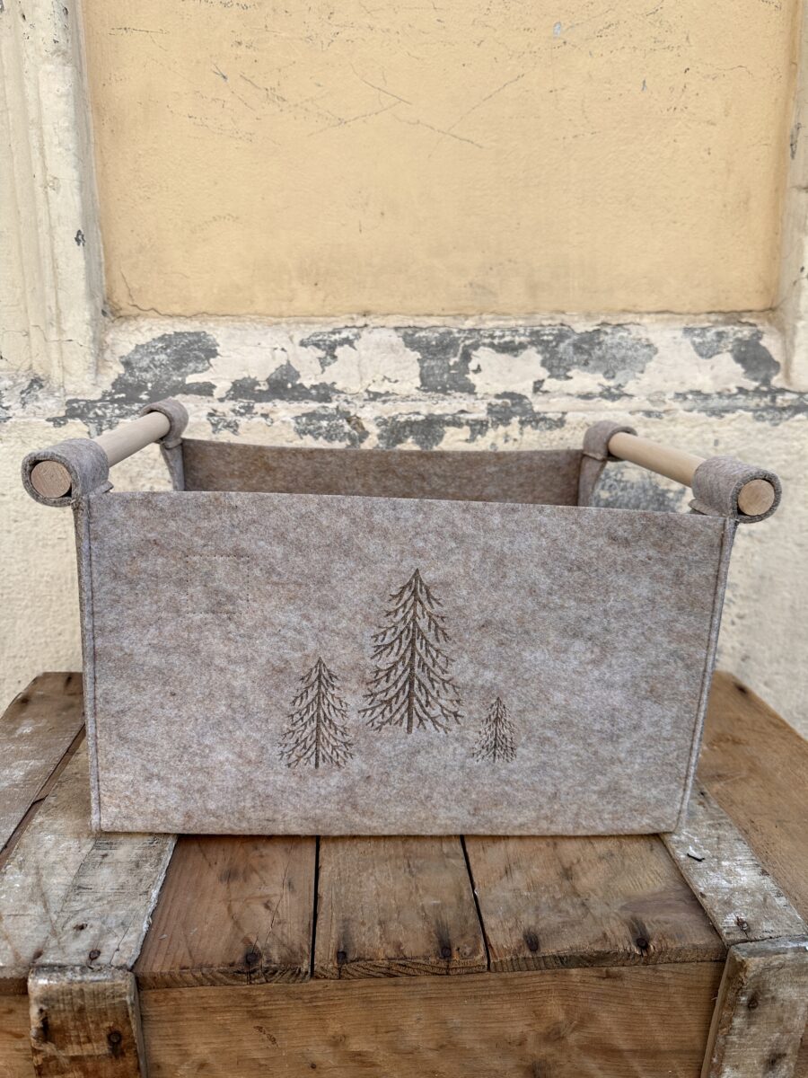 Il feltro di alta qualità dona a ogni cesto una texture morbida e accogliente, capace di integrarsi con naturalezza sia in ambienti moderni che in atmosfere più rustiche o di montagna. I motivi stampati o applicati – che variano a seconda del modello – rendono ogni pezzo decorativo e distintivo, ideale per completare l’arredamento con un dettaglio sobrio ma ricercato.