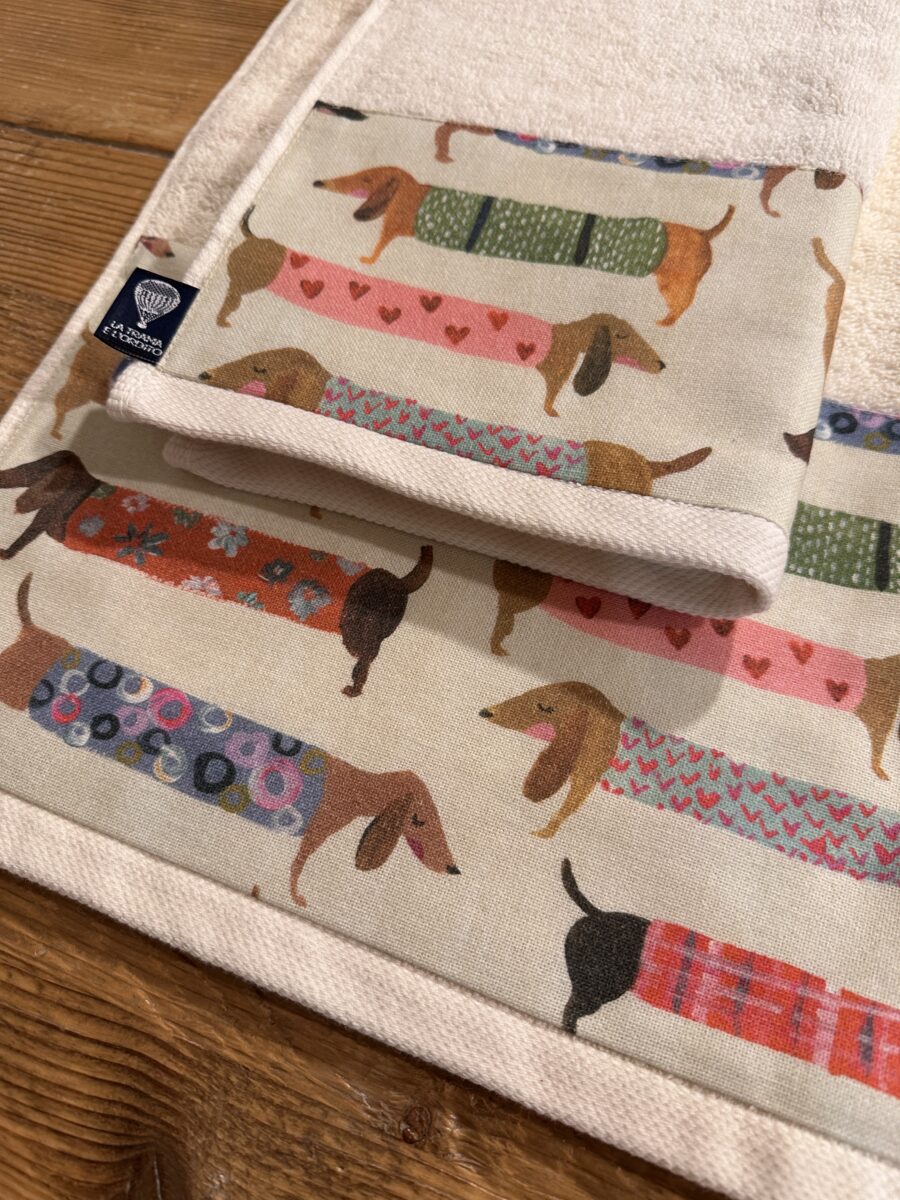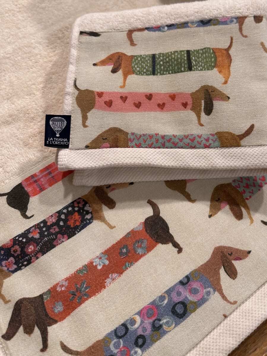 La coppia asciugamani Cani Bassotti fa parte delle nostre linee di prodotti coordinati, create per chi ama curare i dettagli della casa e rendere ogni ambiente armonioso e accogliente. 🐶