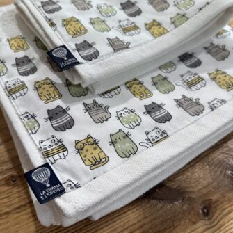 Coppia Asciugamani Gatti Felix – Materie prime di alta qualità e produzione artigianale “Made in Italy”, sono le migliori garanzie per i nostri asciugamani in spugna di cotone. Sono realizzati con speciali lavorazioni che li rendono piacevoli, morbidi al tatto e molto assorbenti. Per renderli unici, li abbiamo decorati con uno dei meravigliosi tessuti di cotone della nostra collezione Pet. L’etichetta con il nostro logo garantisce l’autenticità del manufatto. In vendita abbinata telo viso + ospite, tutto 100% in cotone, si lavano in lavatrice a 40°. Vista la varietà dei soggetti rappresentati sul tessuto, le immagini potrebbero essere diverse tra un asciugamano e l’altro.