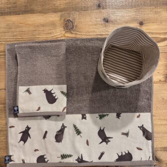 Puoi abbinare la coppia asciugamani Orsi al Cestino in Tessuto, perfetto per tenere in ordine lavette e creme. Per completare la collezione ci sono anche gli accessori coordinati: il Beauty Case e la Pochette, realizzati con lo stesso tessuto. Così crei una parure dal gusto elegante e personale.