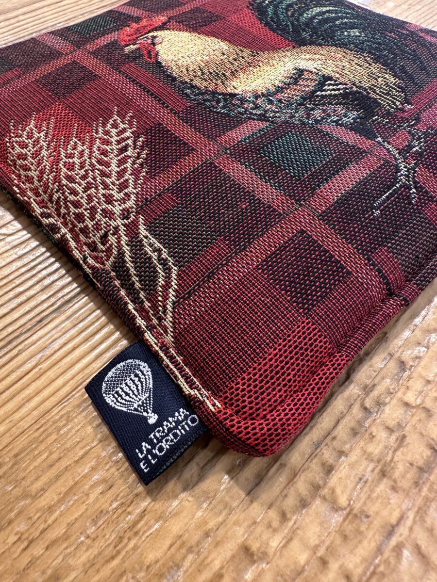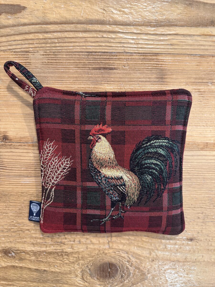 La Coppia Presine Galli Rooster della nostra collezione sono pensate per aggiungere stile, colore e praticità alla tua cucina. Ogni coppia è realizzata con cura nei nostri laboratori artigianali di Brescia, utilizzando tessuti selezionati per la loro qualità, la resa cromatica e la resistenza all’uso quotidiano. Morbide, maneggevoli e funzionali, sono l’accessorio perfetto per proteggerti quando sollevi pentole, teglie o coperchi caldi.