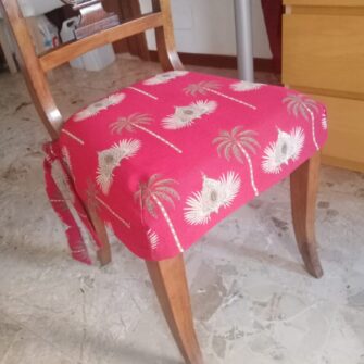 Il copri sedia su misura è una soluzione elegante quando si desidera proteggere la seduta senza rinunciare allo stile. In questo caso abbiamo creato una copertura personalizzata utilizzando un tessuto decorativo oggi non più disponibile, scelto per valorizzare l’ambiente e rendere la sedia più raffinata.