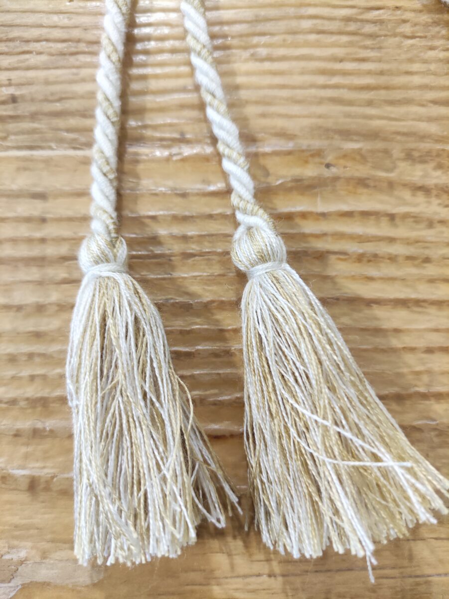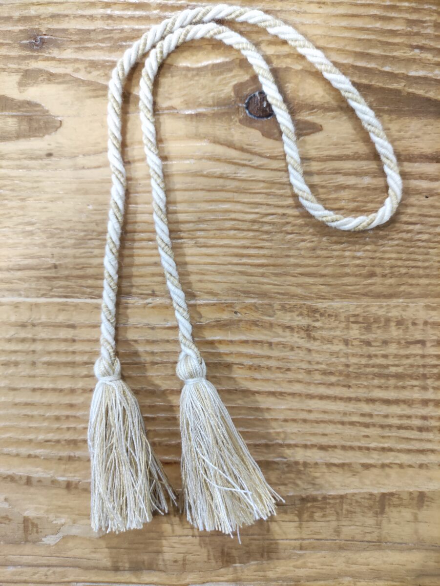 Il Cordoncino Savonarola Avorio Oro è un elemento di design versatile e raffinato, utilizzato principalmente per cucire i cuscini da seduta alle sedie, garantendo così stabilità e comfort. Questo cordoncino, tuttavia, non si limita a questa funzione d’uso: la sua eleganza e robustezza lo rendono perfetto anche come embrasse per piccole tende, aggiungendo un tocco di classe e stile a qualsiasi ambiente domestico. Le nostre passamanerie, tra cui il cordoncino Savonarola, sono tutte orgogliosamente prodotte in Italia. Esse provengono da una storica azienda del settore, rinomata per la sua capacità di coniugare tradizione e innovazione. La produzione avviene nel pieno rispetto delle antiche tecniche artigianali, che si tramandano di generazione in generazione, garantendo così una qualità senza pari. Gli artigiani utilizzano filati di altissima qualità, selezionati con cura per assicurare resistenza e bellezza estetica ai prodotti finiti.