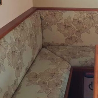 Rivestimento su misura per panca con schienale fisso e cuscini sagomati
