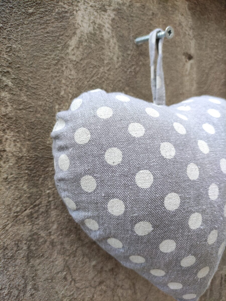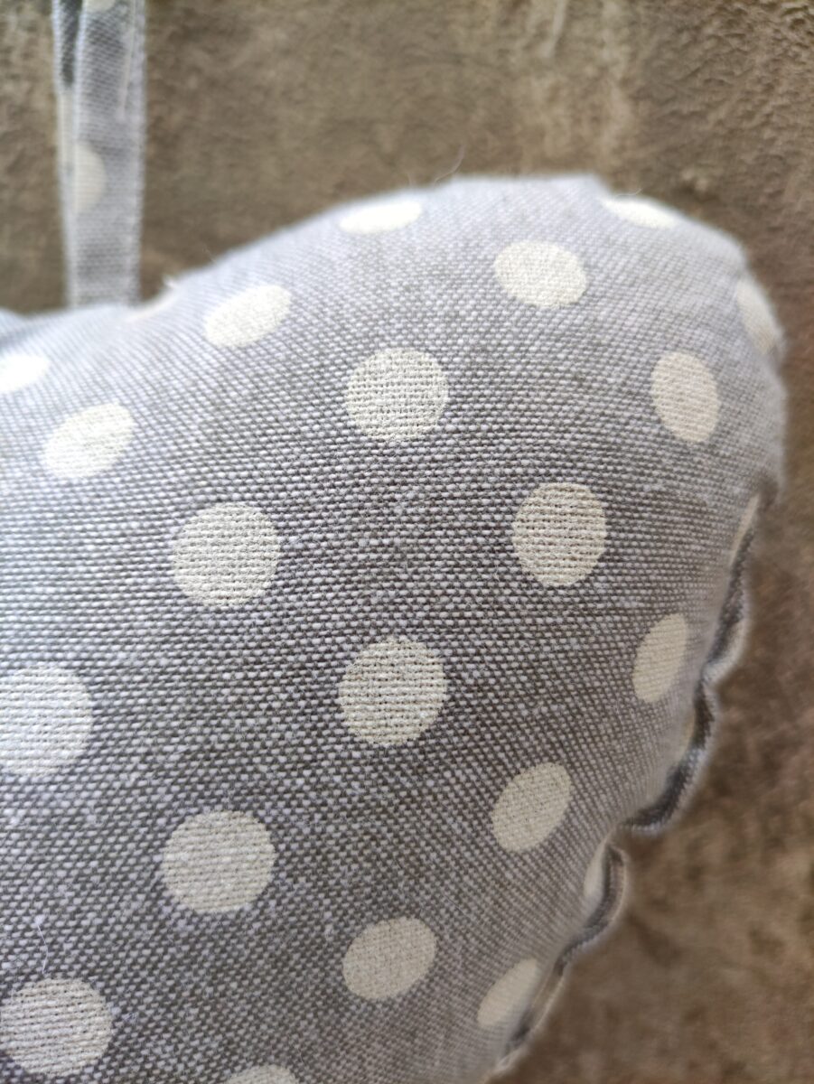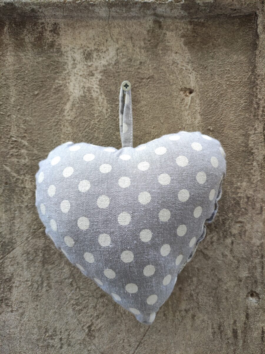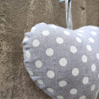 Decorazione Cuore a Pois – Queste decorazioni in tessuto nascono nel nostro laboratorio come piccoli oggetti pensati per arricchire la casa con semplicità e personalità. Ogni pezzo viene realizzato partendo dai nostri tessuti, selezionati per i disegni, i colori e la qualità della stampa. Le sagome vengono ritagliate una a una e successivamente imbottite di ovatta, dando vita a decorazioni leggere ma curate nei dettagli.