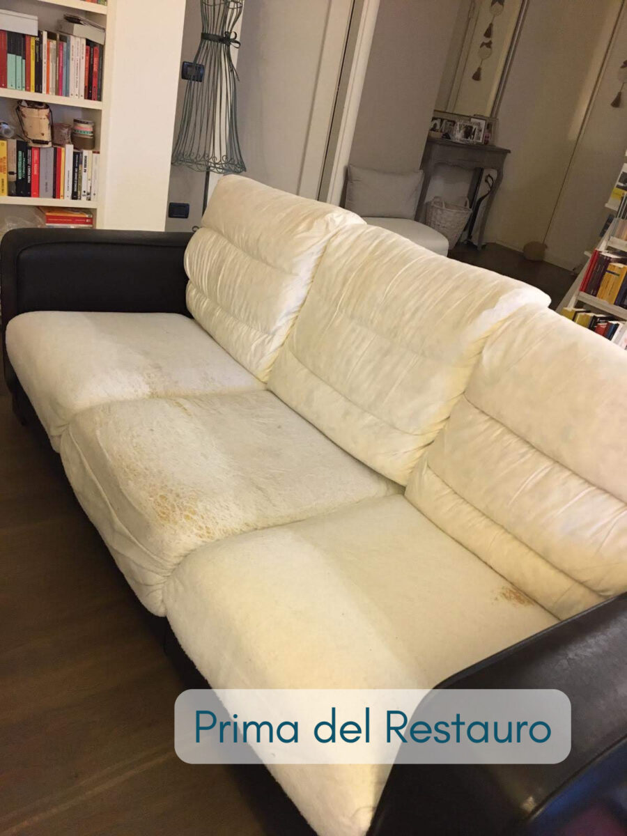 Come sempre, il lavoro nasce dalla nostra consulenza. Valutiamo lo stato del divano, il contesto in cui è inserito e il risultato che si desidera ottenere. In questo caso non era necessario intervenire sulla scocca in ecopelle, che presentava ancora una buona tenuta. Abbiamo quindi progettato fodere nuove per i cuscini, realizzate completamente ex novo.