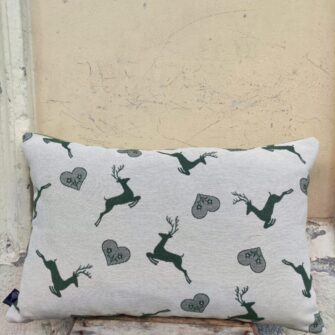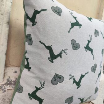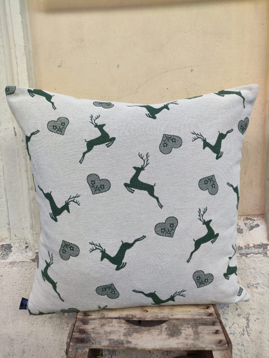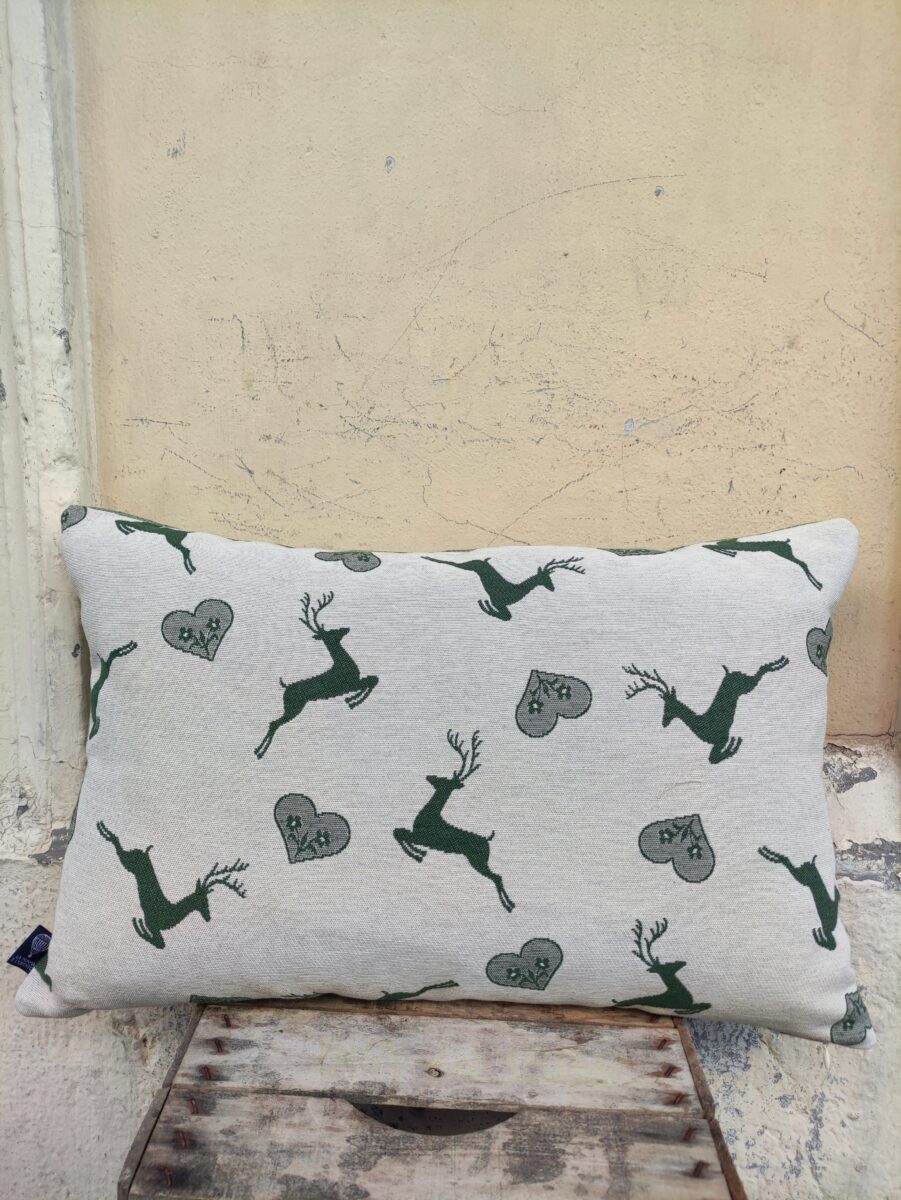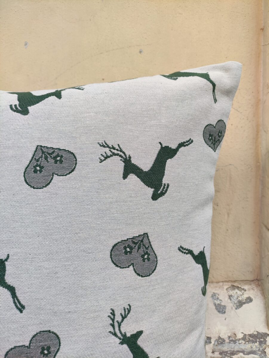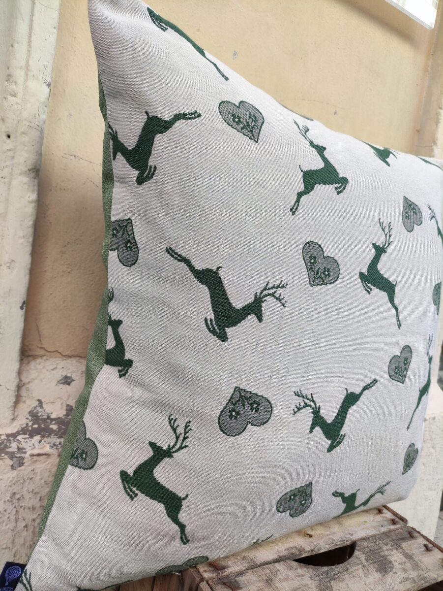 Federa Copricuscino Cervi Gran Paradiso Bianco – Cuori e cervi per richiamare lo stile tirolese, coordinati con tutta la nostra collezione per la montagna. Le sue gradazioni di bianco e verde si inseriscono perfettamente in arredamenti classici e in ambienti di montagna. Arredare la tua casa con stile inizia dai dettagli, e le nostre federe copricuscino artigianali sono pensate per aggiungere carattere, eleganza e qualità ai tuoi ambienti. Ogni federa è realizzata nei nostri laboratori di sartoria di Brescia, utilizzando i tessuti delle nostre collezioni: materiali selezionati per bellezza, resistenza e resa estetica.