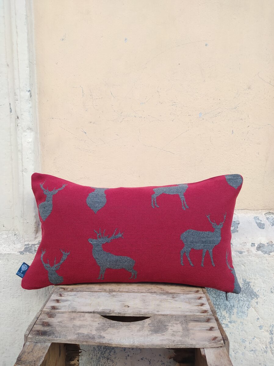 Federa Copricuscino Cervi Aspen Rosso – Un tessuto Jacquard morbido come il panno e tanti cervi stilizzati per creazioni eleganti. Arredare la tua casa con stile inizia dai dettagli, e le nostre federe copricuscino artigianali sono pensate per aggiungere carattere, eleganza e qualità ai tuoi ambienti. Ogni federa è realizzata nei nostri laboratori di sartoria di Brescia, utilizzando i tessuti delle nostre collezioni: materiali selezionati per bellezza, resistenza e resa estetica.