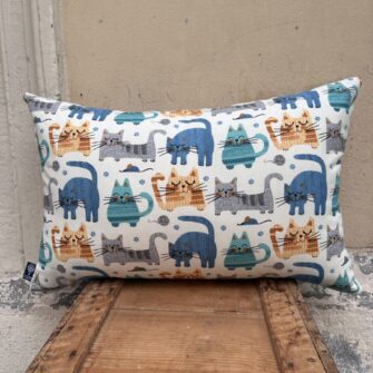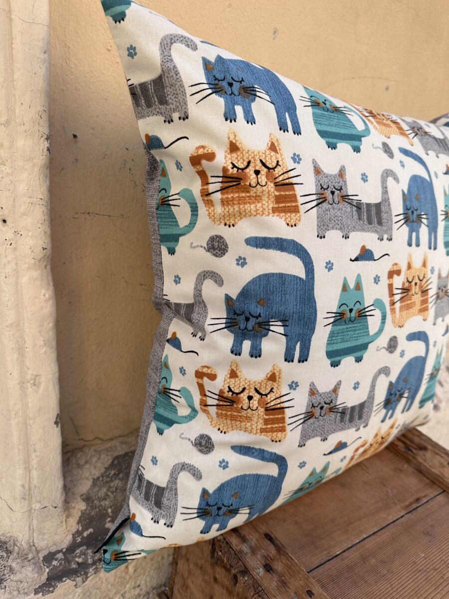 La Federa Gatti Azzurri è disponibile in diverse misure. Di conseguenza, può essere utilizzata su divani, letti, panche o poltrone. Inoltre è perfetta come idea regalo per chi ama i gatti o per chi cerca un complemento d’arredo allegro e originale. Il motivo simpatico porta un sorriso nell’ambiente. Infatti, è ideale anche per dare un tocco giocoso a case vacanza, studi creativi o camere dei più piccoli.