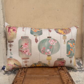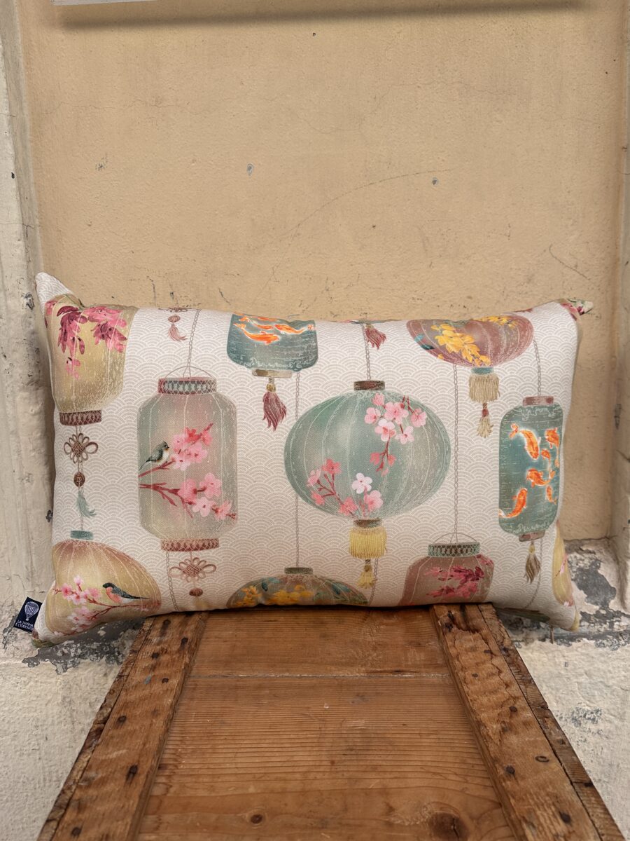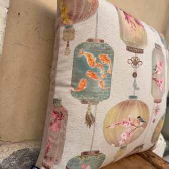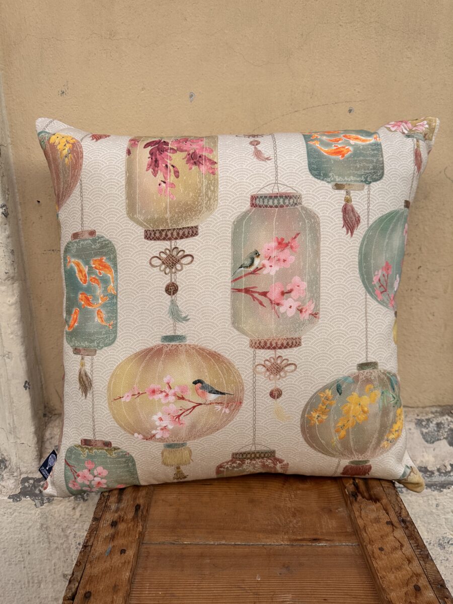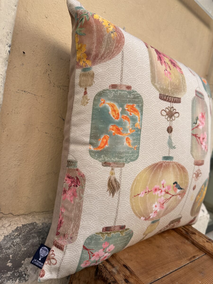 Federa Copricuscino Lanterne – Il disegno di questi cuscini è magico. Tante lanterne decorate con delicati fiori su uno sfondo mosso da un piccolo disegno all-over, che dona un tocco di eleganza e raffinatezza. L’armonia dei colori pastello si intreccia con l’originalità del design, creando un’atmosfera accogliente e serena in ogni ambiente. Ideale per chi cerca un equilibrio tra tradizione e modernità, questo cuscino si adatta perfettamente ad ambienti classici o contemporanei.