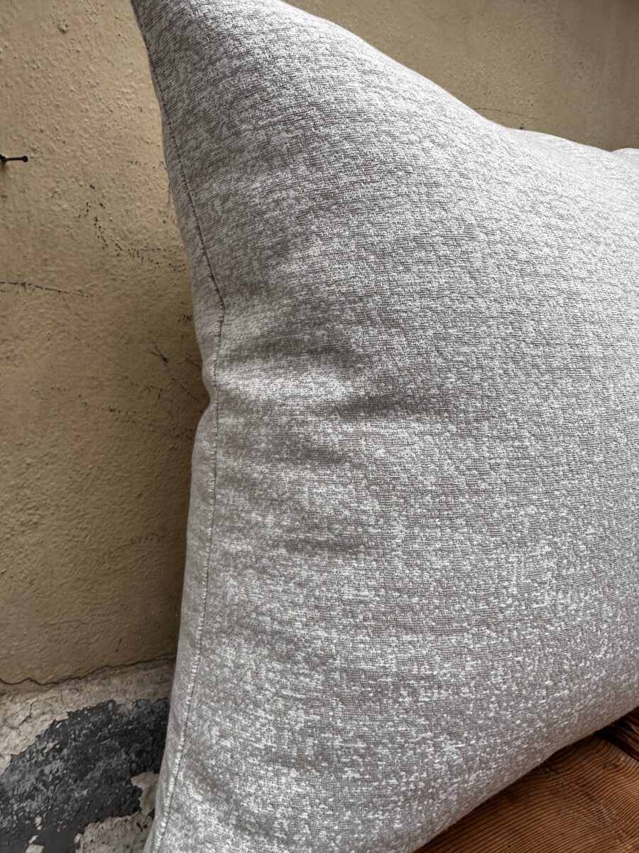 Il tessuto Marmorizzato è robusto perfetto per cuscini decorativi su divani, letti e poltrone. Il filato è composto da fibre di colori diversi, sui toni naturali écru e tortora, che donano a questo tessuto uno splendido effetto mélange. Il risultato non è una piatta tinta unita ma un colore che si inserisce in qualunque contesto, richiamando vari toni cromatici.