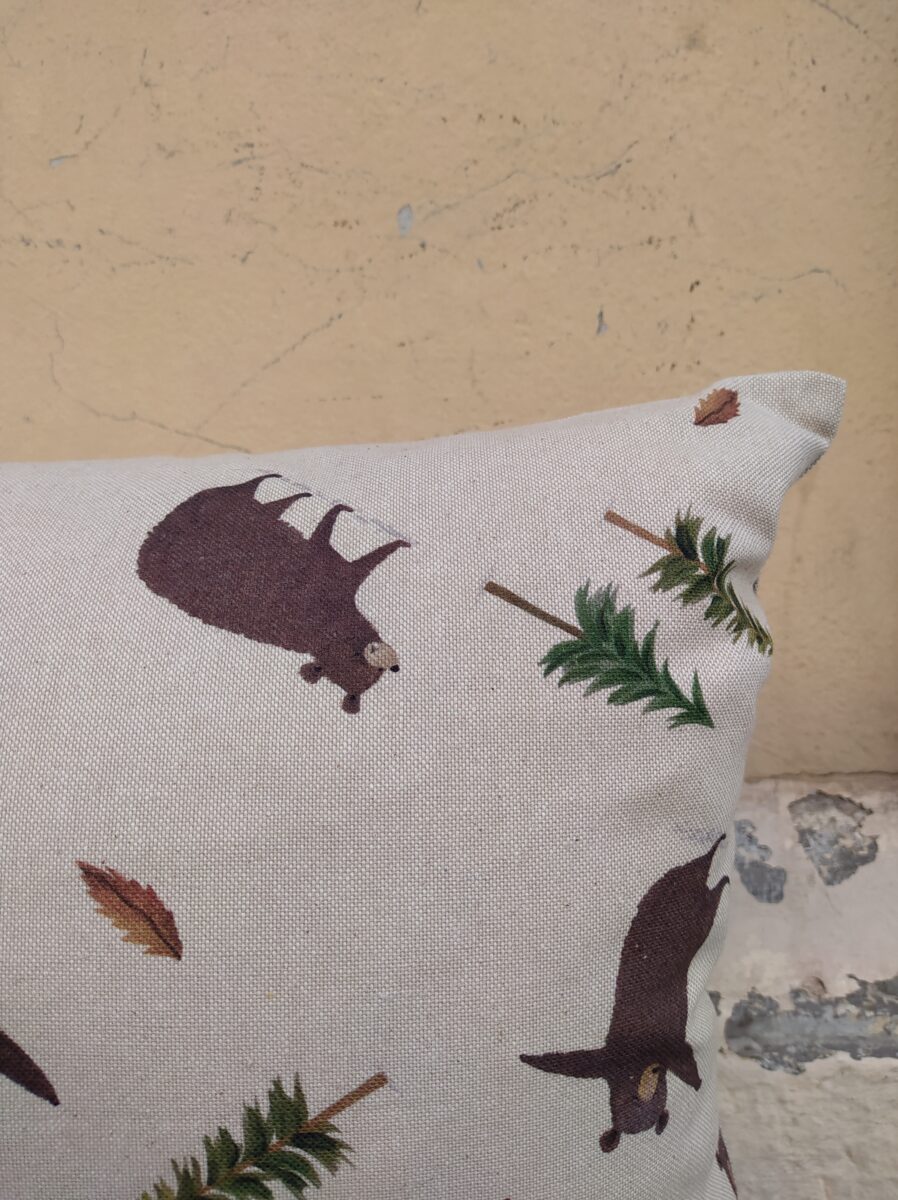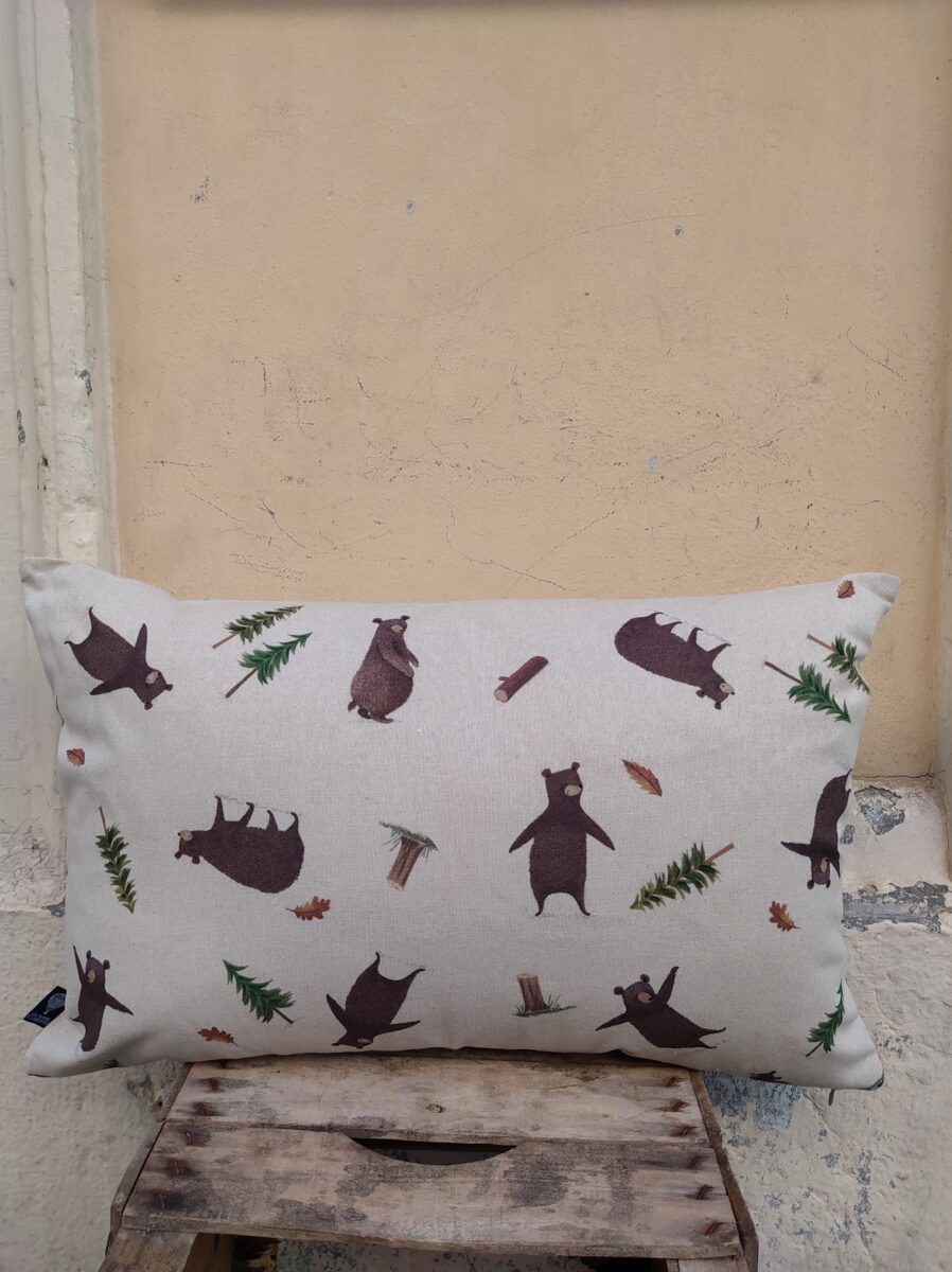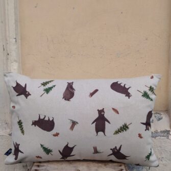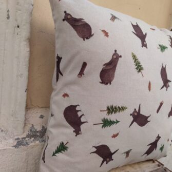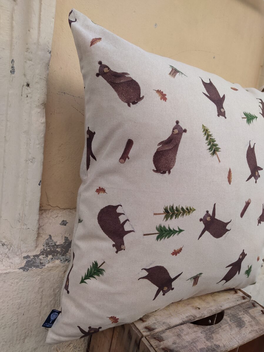 Federa Copricuscino Orsi Panama – La magica vita del bosco raccontata da simpatici orsi giocherelloni, stampati su questo cotone morbido e resistente.