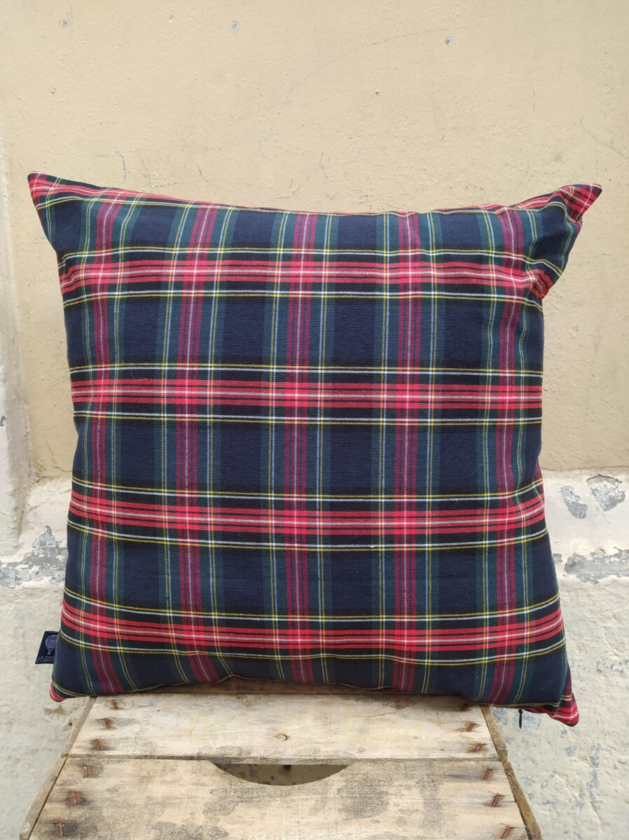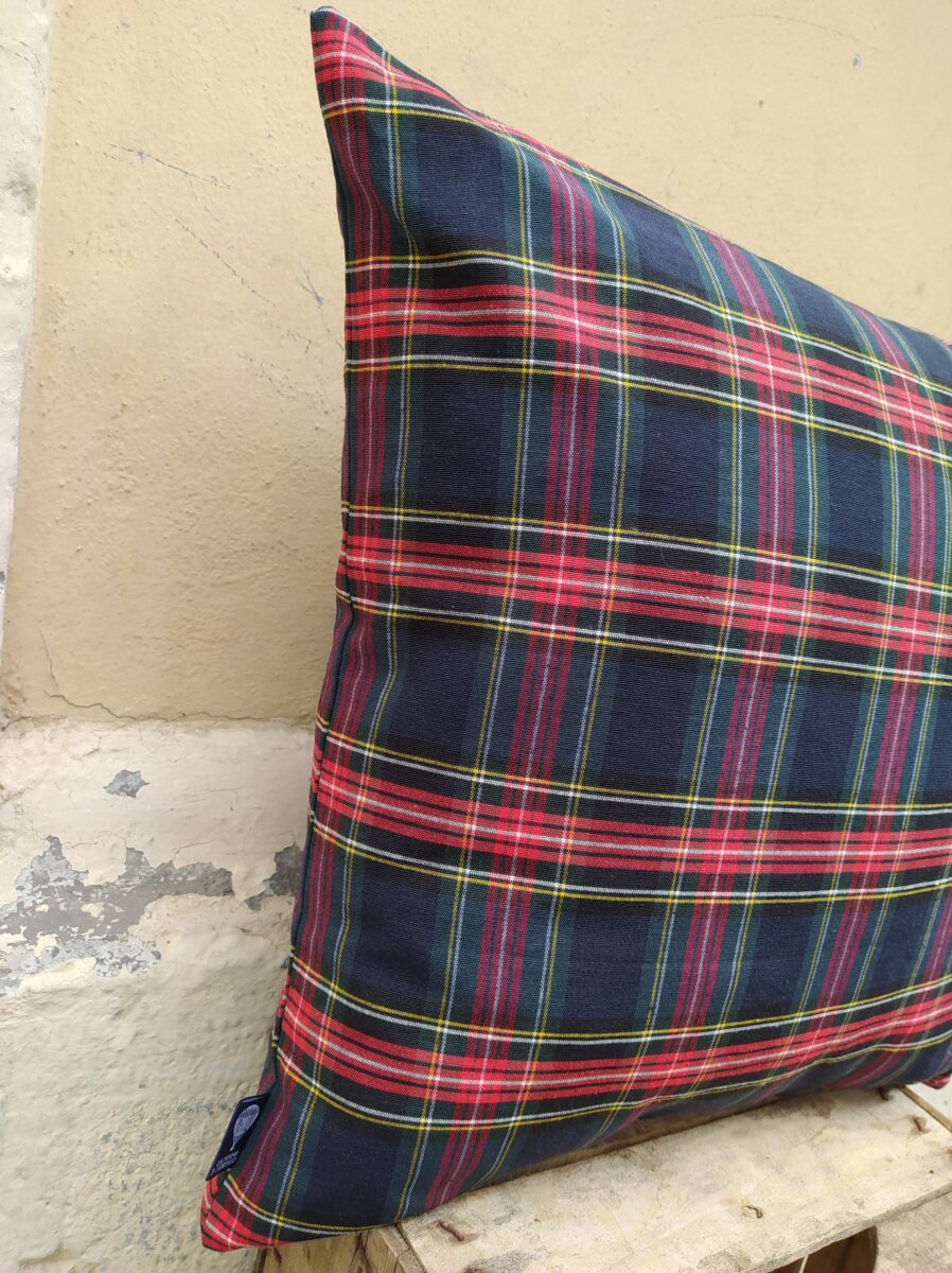 Federa Copricuscino Scozzese Tartan Blu – Il tartan è un particolare disegno Highland scozzesi. Il kilt, il tipico gonnellino scozzese, è realizzato in tartan e questo tessuto è considerato un simbolo tradizionale della Scozia. Originariamente il tartan era realizzato in lana, mentre oggi si utilizzano anche altri materiali. Questo disegno, che in Italia chiamiamo scozzese, è ottenuto con fili di colori diversi che si ripetono con uno schema definito, uguale sia nell’ordito che nella trama.