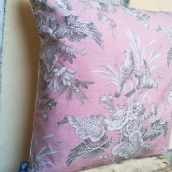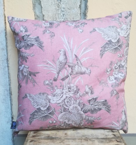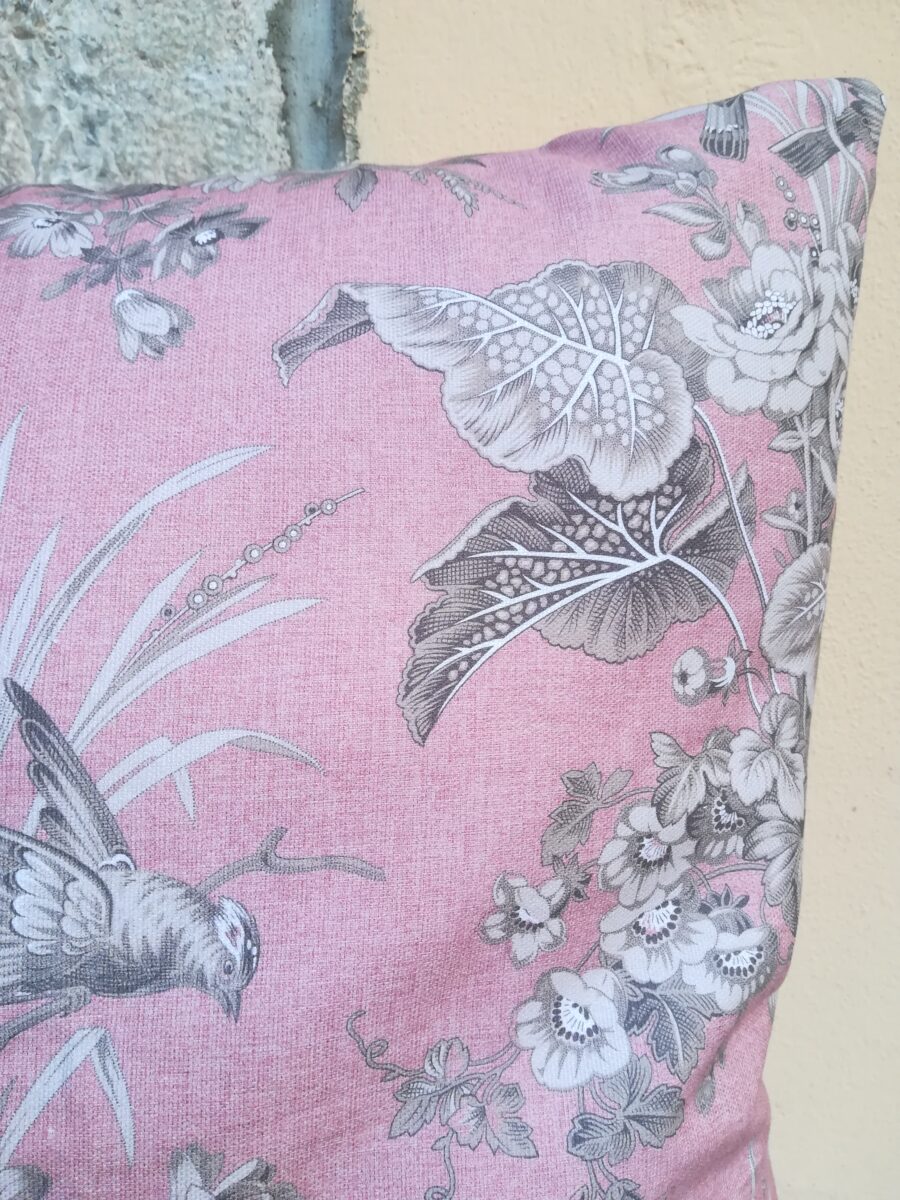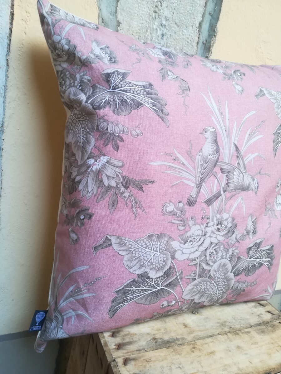 Federa Copricuscino Toile Montbrison Rosa – Splendido tessuto di cotone morbido e resistente. Un disegno classico, rivisitato con la tecnica digitale, che crea stupendi effetti di profondità. Stampato in tutte le sfumature di grigio su fondo cipria, moderno ed elegante, si inserisce in ambienti classici o contemporanei.