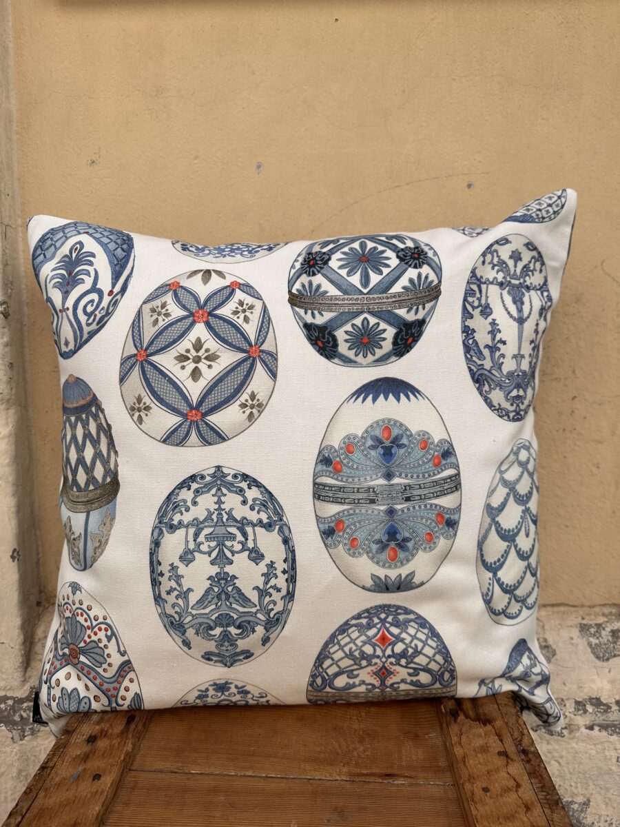 Ogni Federa Copricuscino Uova Imperiali è rifinita con cerniera invisibile, per un’estetica elegante e pulita, ed è lavabile ad acqua per un uso pratico e quotidiano. Su richiesta forniamo anche gli interni, scegliendo imbottiture di qualità che mantengono la forma nel tempo.