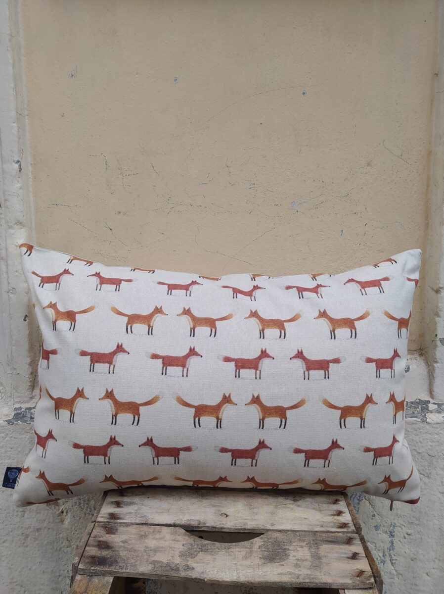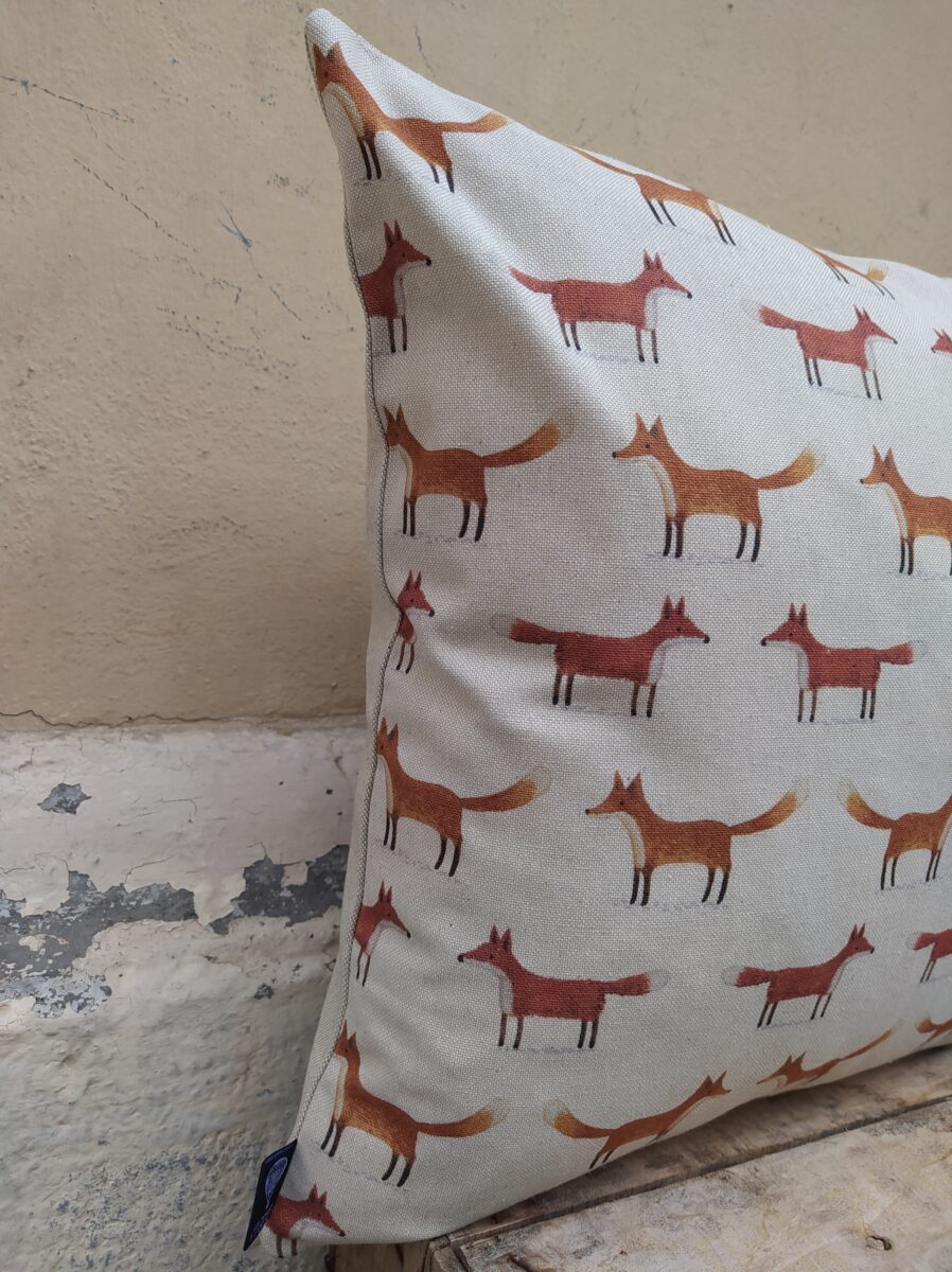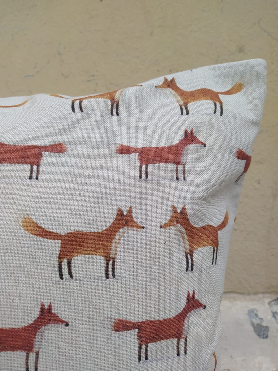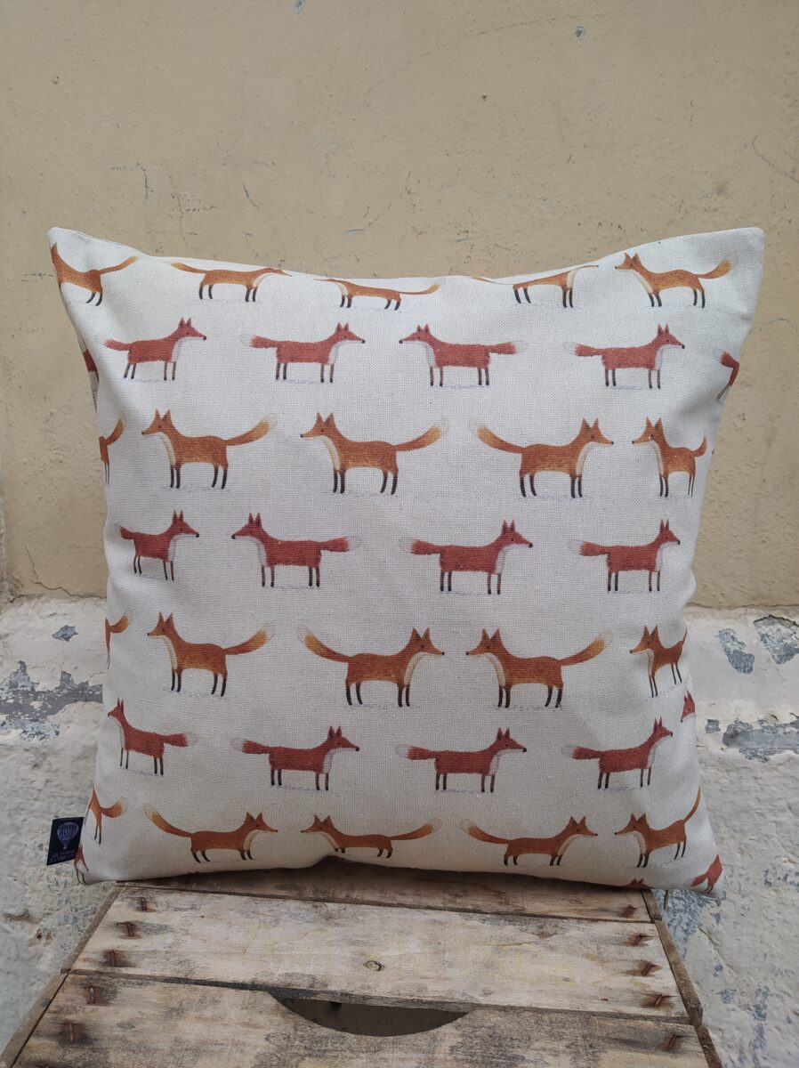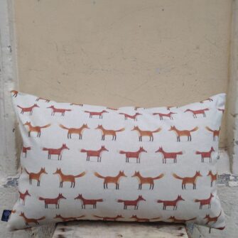 Federa Copricuscino Volpi Panama – Tante piccole volpi, ordinate e simmetriche, stampate su un panama di cotone morbido e resistente.