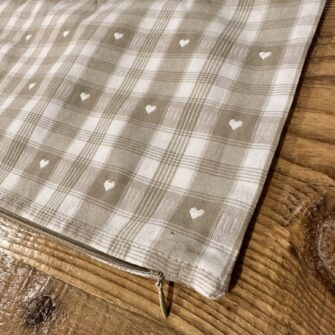La Federa Cuoricini è chiusa con una cerniera invisibile, che le conferisce un aspetto pulito ed elegante, evitando che gli oggetti scivolino fuori. È venduta senza imbottitura, offrendoti la flessibilità di utilizzarla nel modo che preferisci, sia come custodia che per altri usi creativi. La sua compattezza e leggerezza la rendono un’aggiunta ideale al tuo bagaglio, senza occupare spazio inutilmente. In questo modo, puoi avere sempre a portata di mano tutti quei piccoli accessori che spesso si perdono nei meandri della valigia.