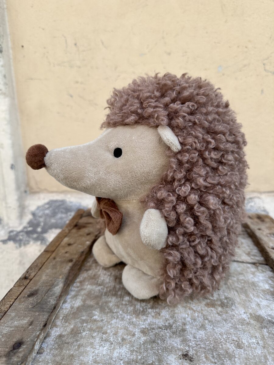Fermaporta Riccio Bruno Il fermaporta Bruno è un riccio in tessuto che unisce dolcezza e praticità. Con il suo morbido musetto e il fiocchetto elegante, porta simpatia e stile in ogni ambiente. Solido e funzionale, mantiene le porte ferme con naturalezza trasformandosi in un fermaporta decorativo che arreda con calore e originalità.