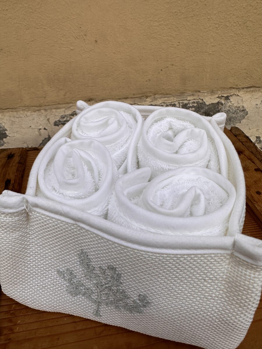 Le lavette sono facili da mantenere e si lavano senza problemi, garantendo un uso duraturo nel tempo. Sono perfette per essere tenute a portata di mano, grazie al pratico cestino che consente di organizzare il tuo spazio bagno in modo ordinato. Inoltre, questo set si presta anche come regalo elegante e utile, ideale per chi cerca un’idea originale per arredare o rinnovare il proprio bagno con stile.