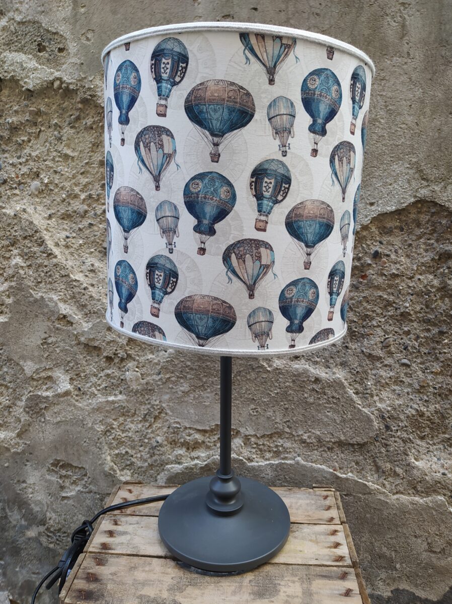 PARALUME MONGOLFIERE NACELLE – I nostri paralumi vengono interamente realizzati a mano, da esperti artigiani bresciani, utilizzando i tessuti delle nostre collezioni accoppiati a pvc ignifugo in classe 1. Le nostre creazioni hanno linee, forme e design semplici e raffinati. Una ricercata eleganza che valorizza ogni ambiente. L’attenta cura per i dettagli è ciò che rende ogni paralume unico ed esclusivo. Come tutti i nostri prodotti, anche i paralumi vengono realizzati con materiali di prima qualità. L’attacco per portalampada E14 da 2,8 cm. consente di montarlo sulle lampade da terra o da tavolo che hanno l’attacco piccolo. Vista la varietà dei soggetti rappresentati sul tessuto, i disegni potrebbero essere diversi tra un paralume e l’altro. La base della lampada ha solo lo scopo di presentare il paralume e non è compresa nel prezzo di vendita.