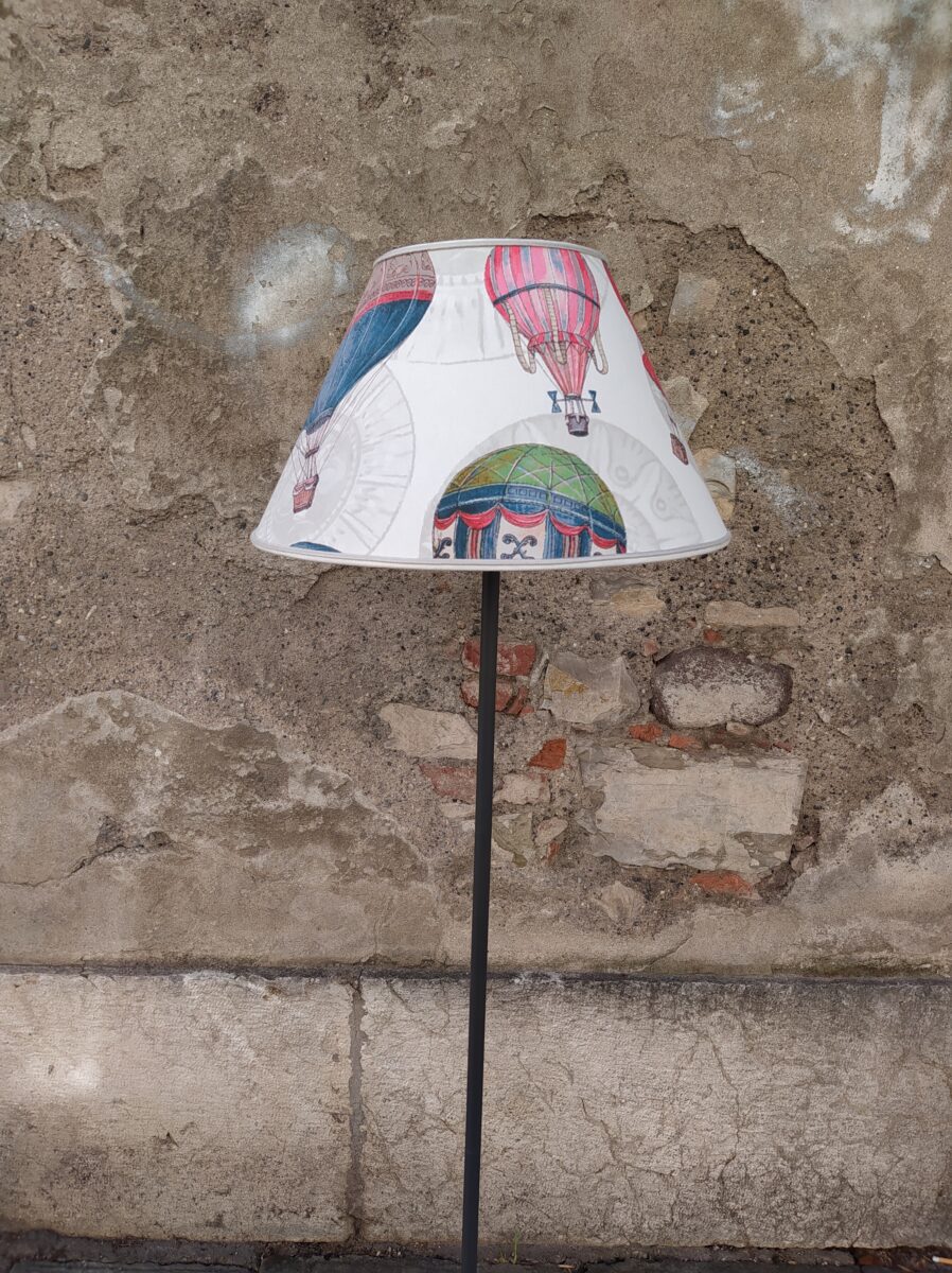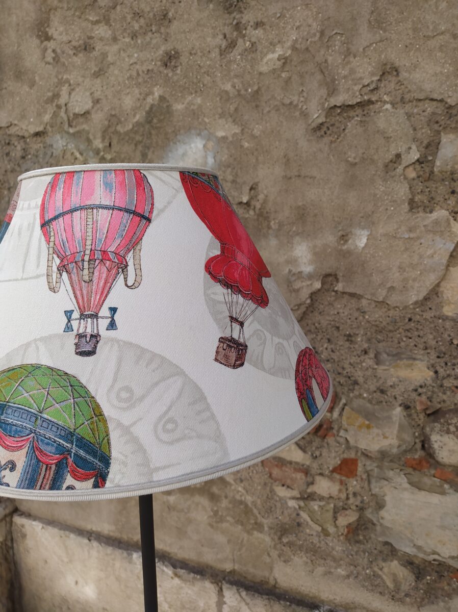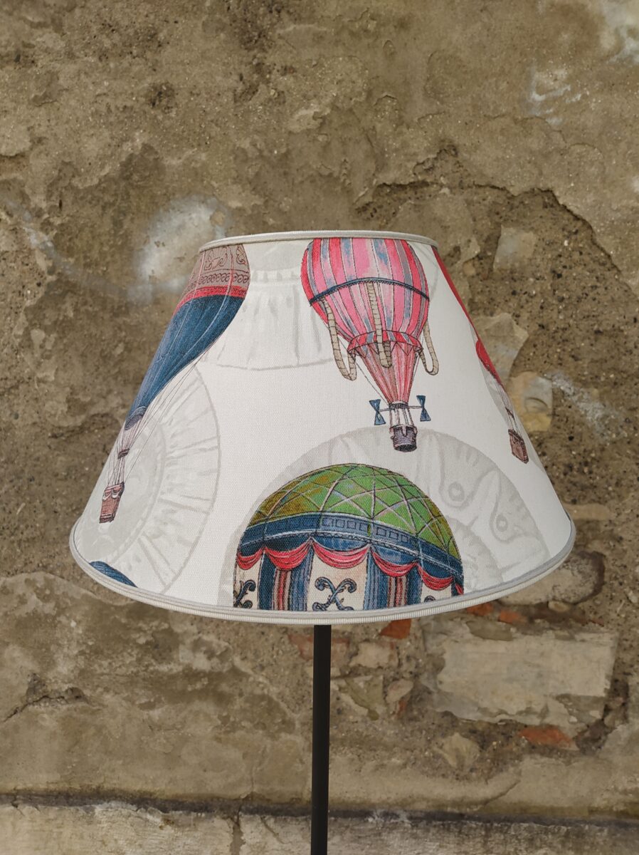 PARALUME MONGOLFIERE ROZIERE – I nostri paralumi vengono interamente realizzati a mano, da esperti artigiani bresciani, utilizzando i tessuti delle nostre collezioni accoppiati a pvc ignifugo in classe 1. Le nostre creazioni hanno linee, forme e design semplici e raffinati. Una ricercata eleganza che valorizza ogni ambiente. L’attenta cura per i dettagli è ciò che rende ogni paralume unico ed esclusivo. Come tutti i nostri prodotti, anche i paralumi vengono realizzati con materiali di prima qualità. L’attacco per portalampada E27 da 4 cm. consente di montarlo sulla maggior parte delle lampade da terra o da tavolo. Vista la varietà dei soggetti rappresentati sul tessuto, i disegni potrebbero essere diversi tra un paralume e l’altro. La base della lampada ha solo lo scopo di presentare il paralume e non è compresa nel prezzo di vendita.